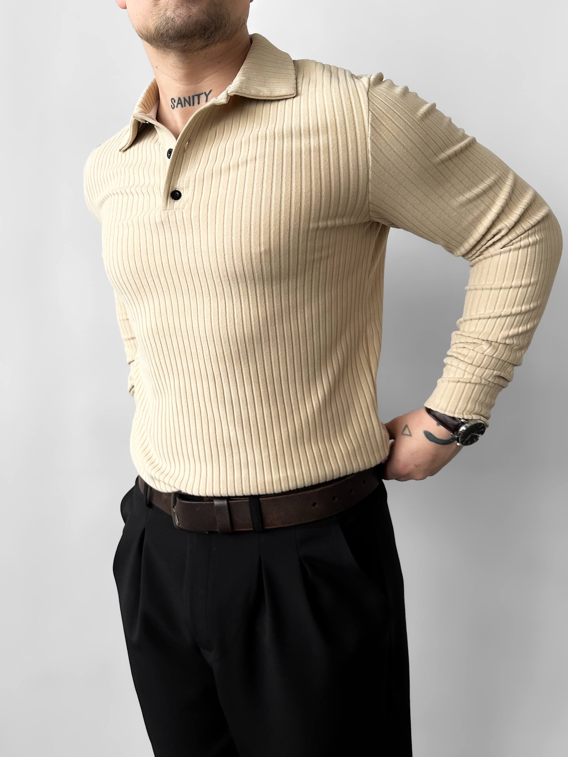 Мужская Классическая Базовая Бежевая Кофта Поло в Рубчик