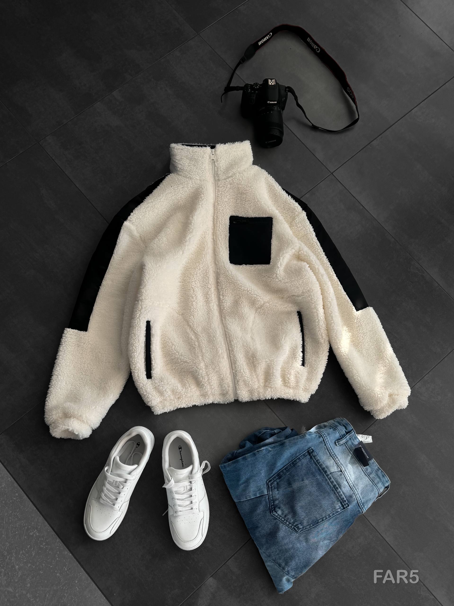 Мужская Плюшевая Молочная Кофта Барашек на Змейке с Высокой Горловиной