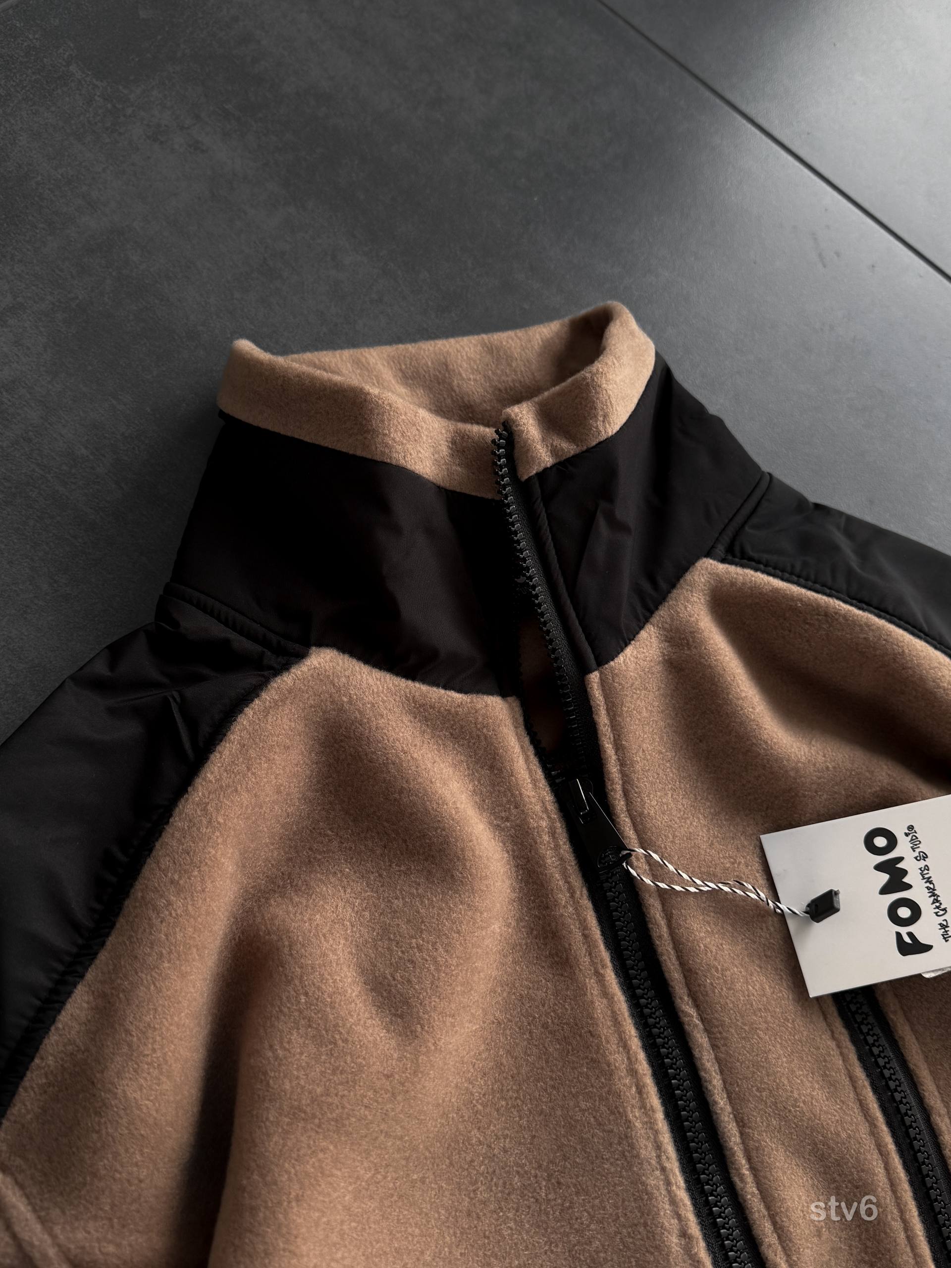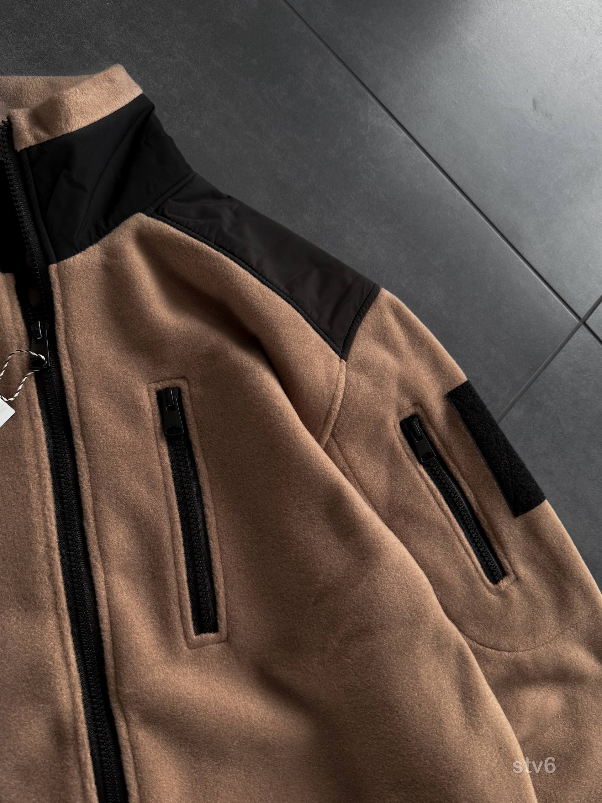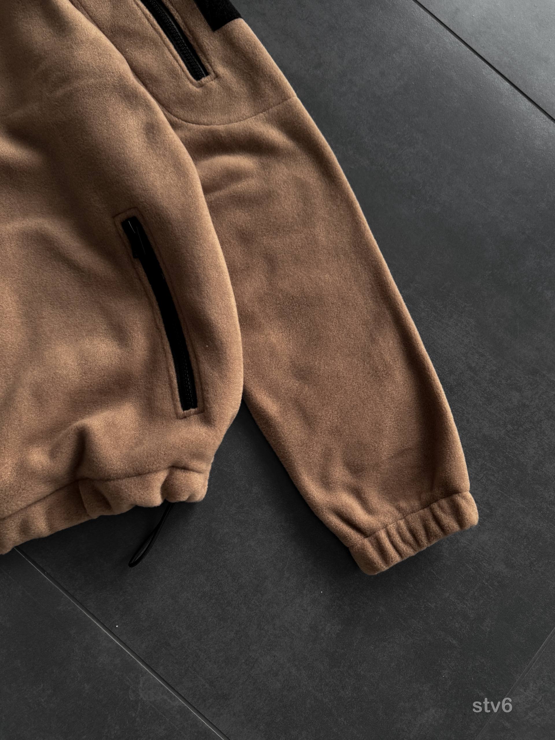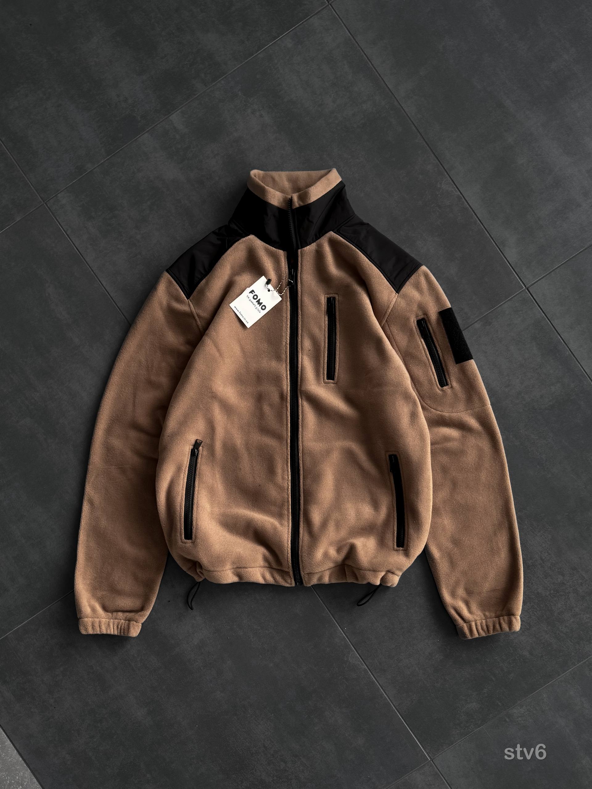 Мужская Теплая Флисовая Бежевая Кофта на Молнии с Высокой Горловиной