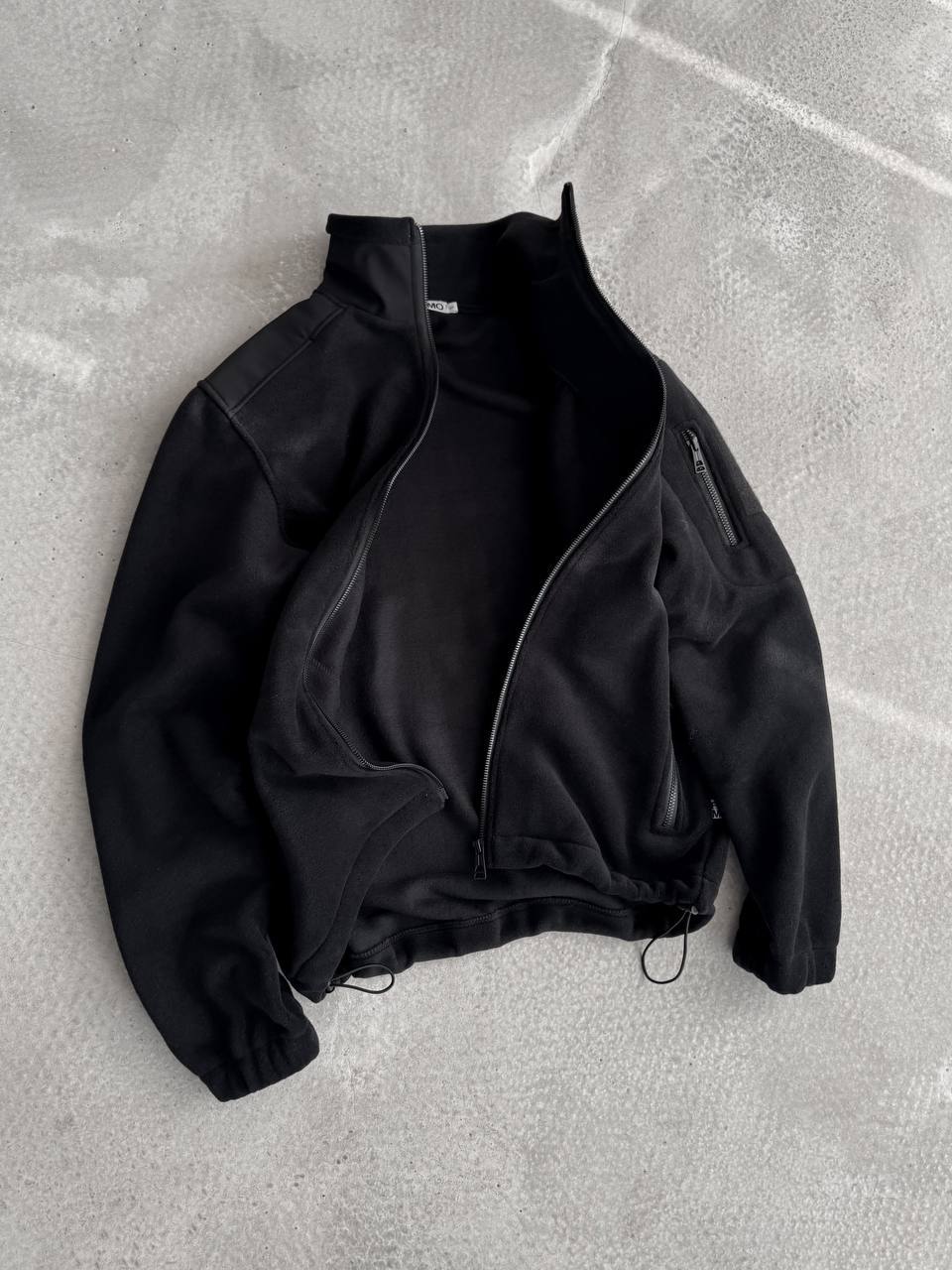 Мужская Теплая Флисовая Черная Кофта на Молнии с Высокой Горловиной