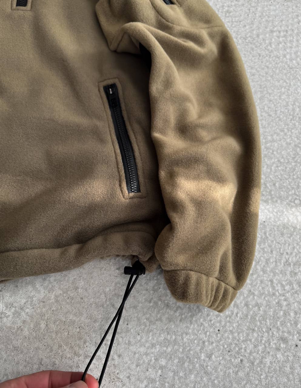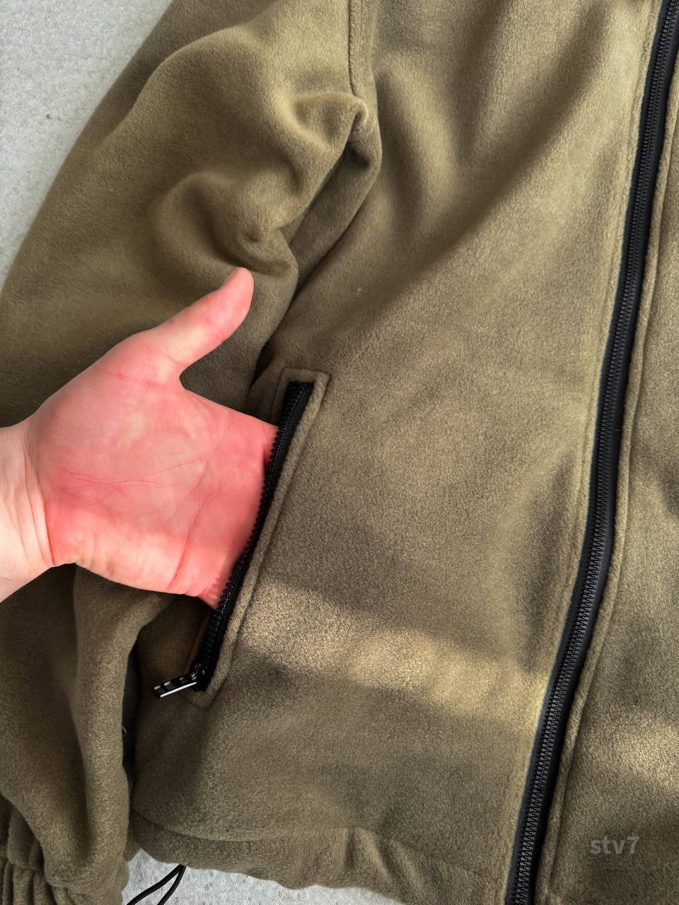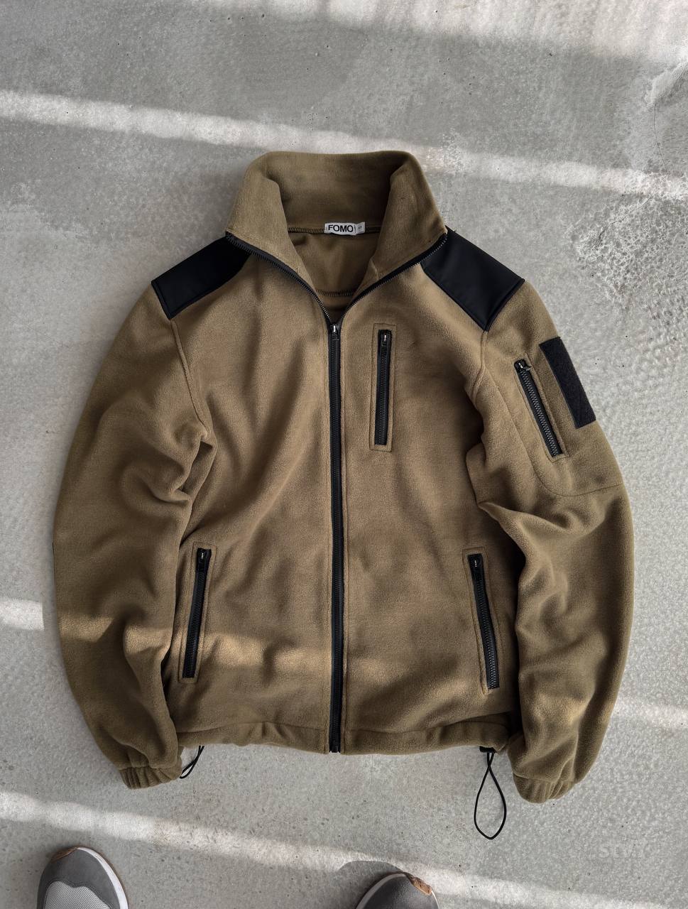Мужская Теплая Флисовая Кофта Хаки на Молнии с Высокой Горловиной