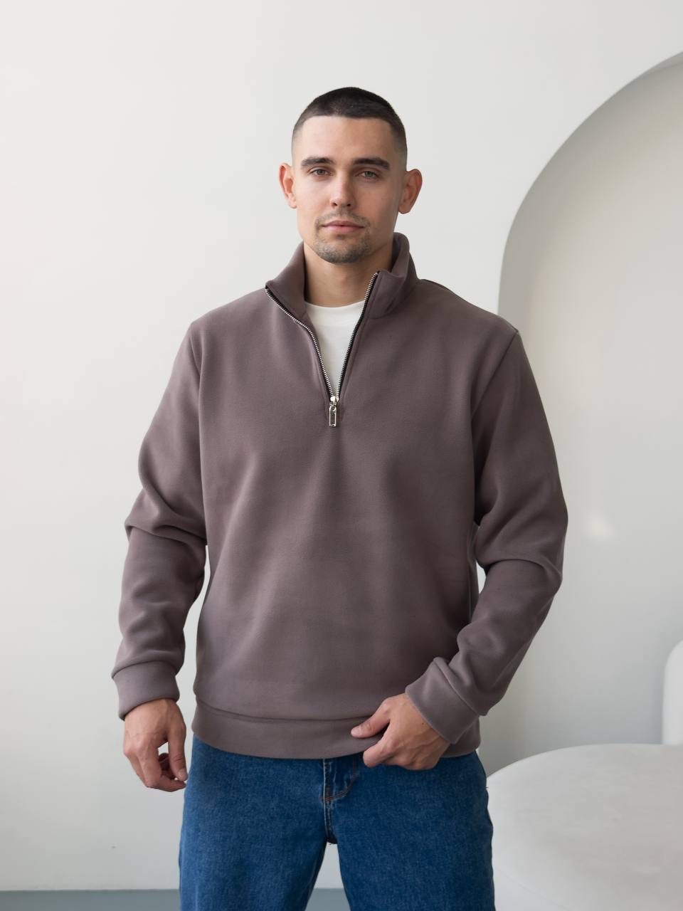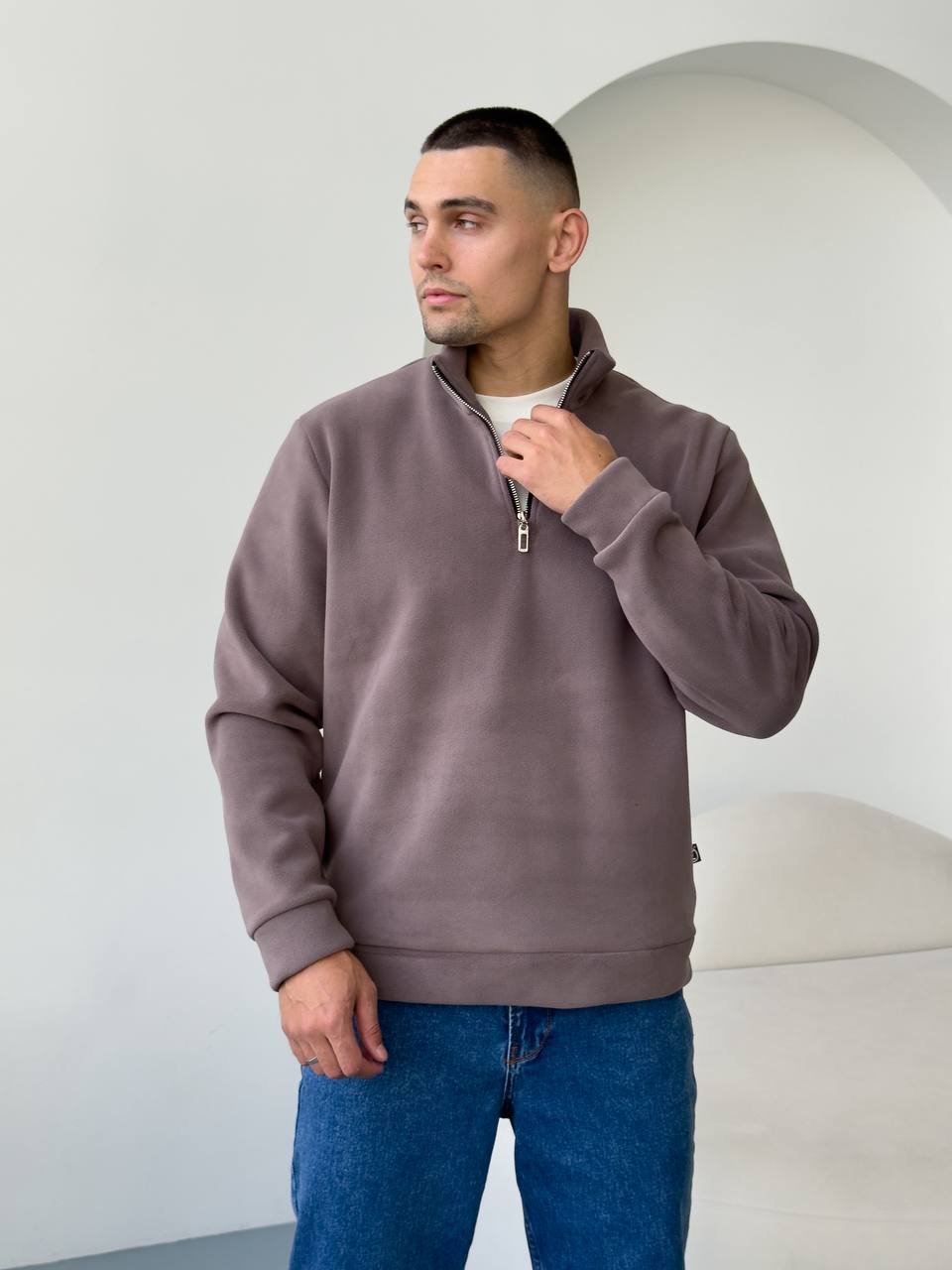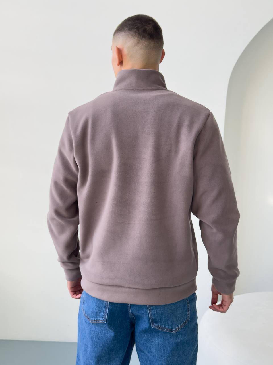 Мужская Теплая Флисовая Кофта Мокко с Высокой Горловиной на Коротком Замке