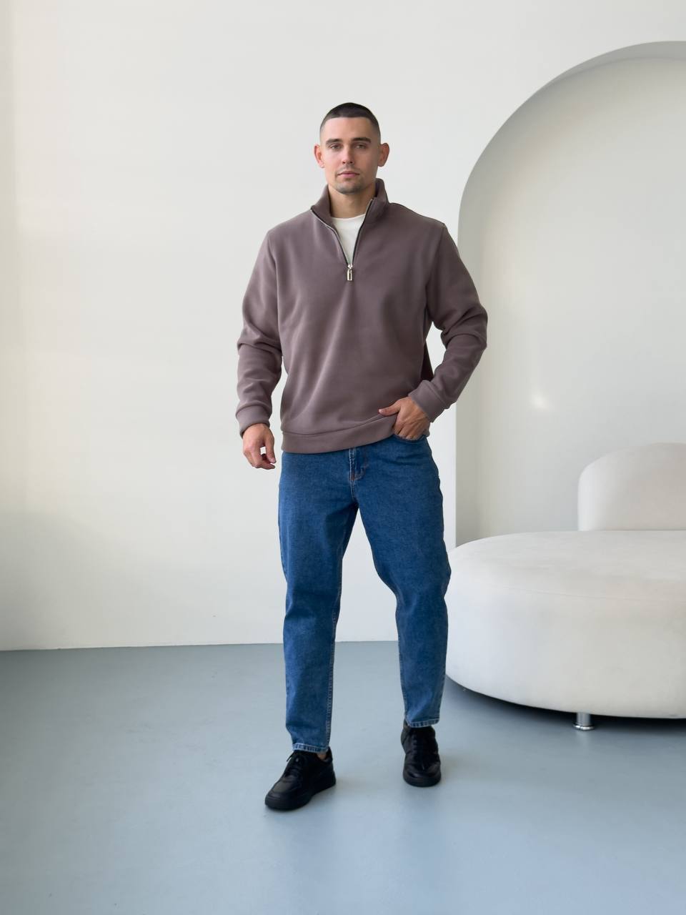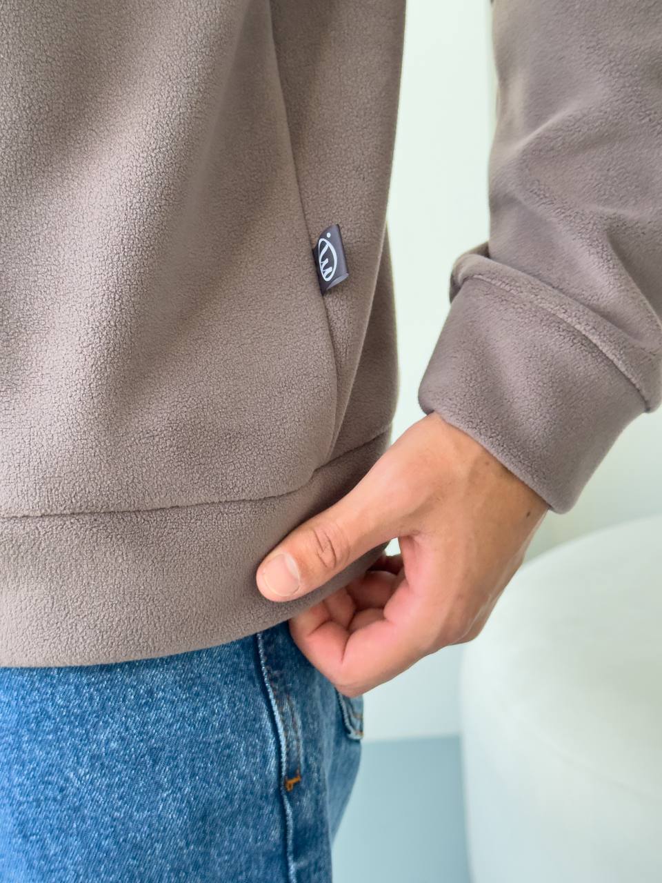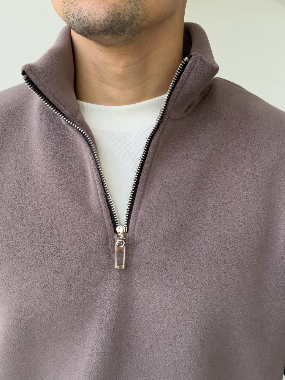 Мужская Теплая Флисовая Кофта Мокко с Высокой Горловиной на Коротком Замке