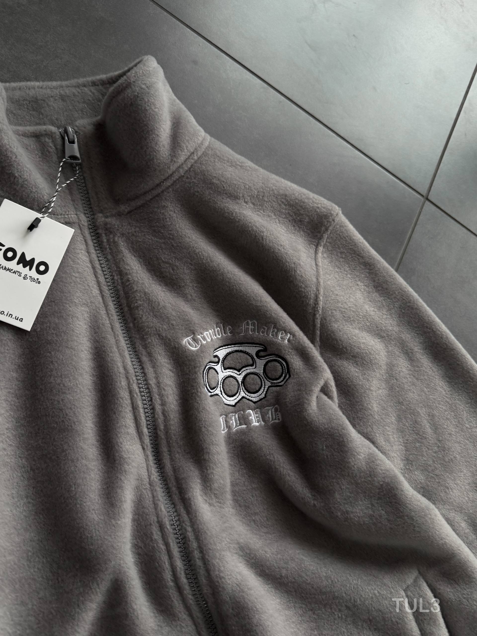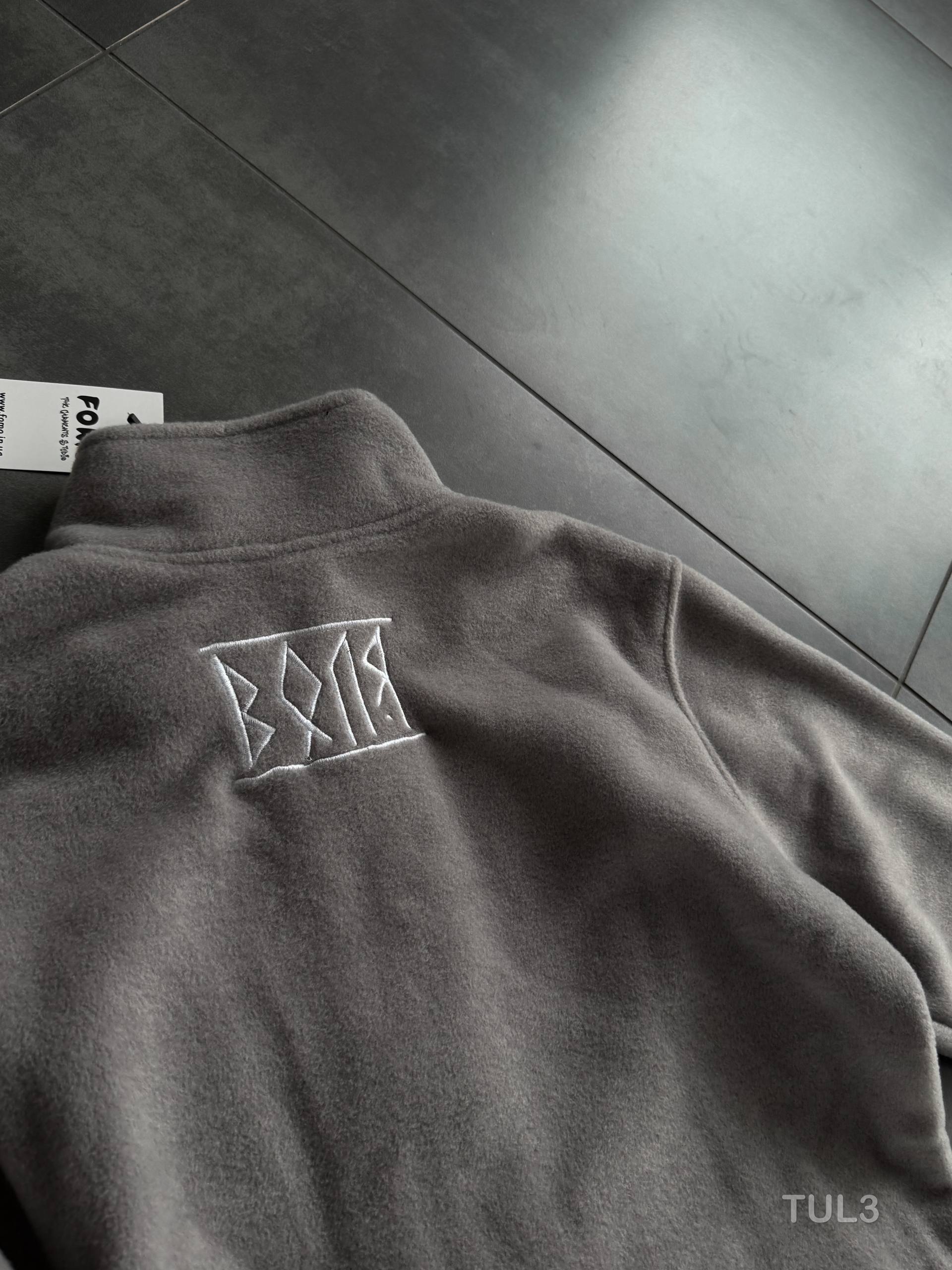 Мужская Теплая Флисовая Серая Кофта с Вышивкой – Флиска на Молнии с Высокой Горловиной