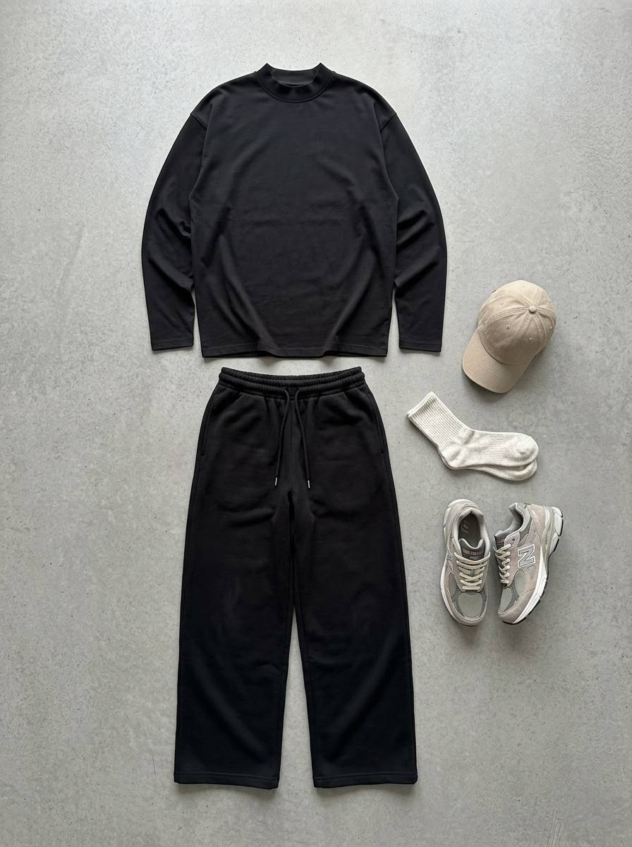 Мужской Базовый Черный Спортивный Костюм Свободного Кроя – Свитшот + Широкие Штаны