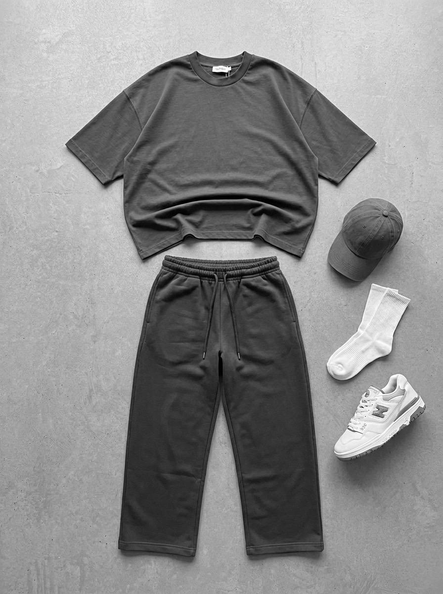Мужской Базовый Графитовый Летний Костюм Свободного Кроя (Футболка + Штаны)