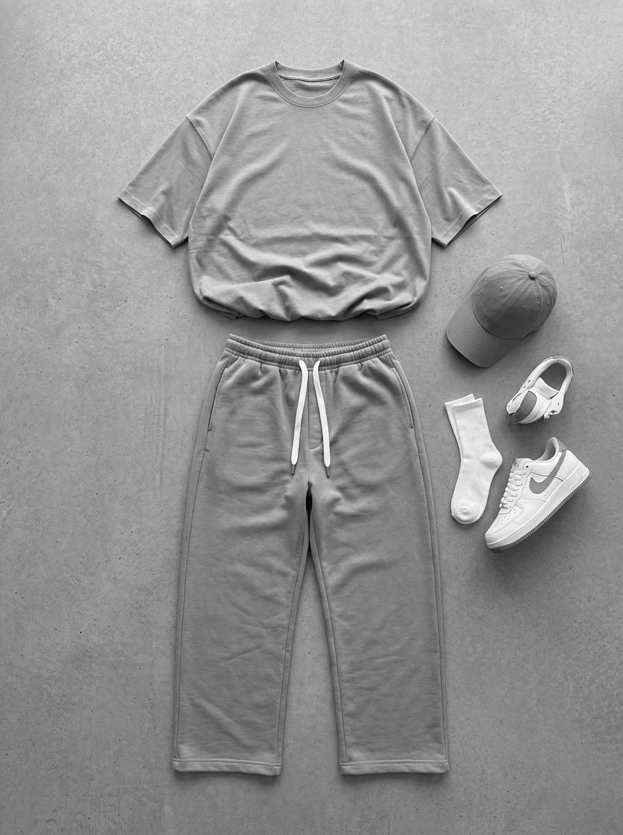 Мужской Базовый Серый Летний Костюм Свободного Кроя (Футболка + Штаны)