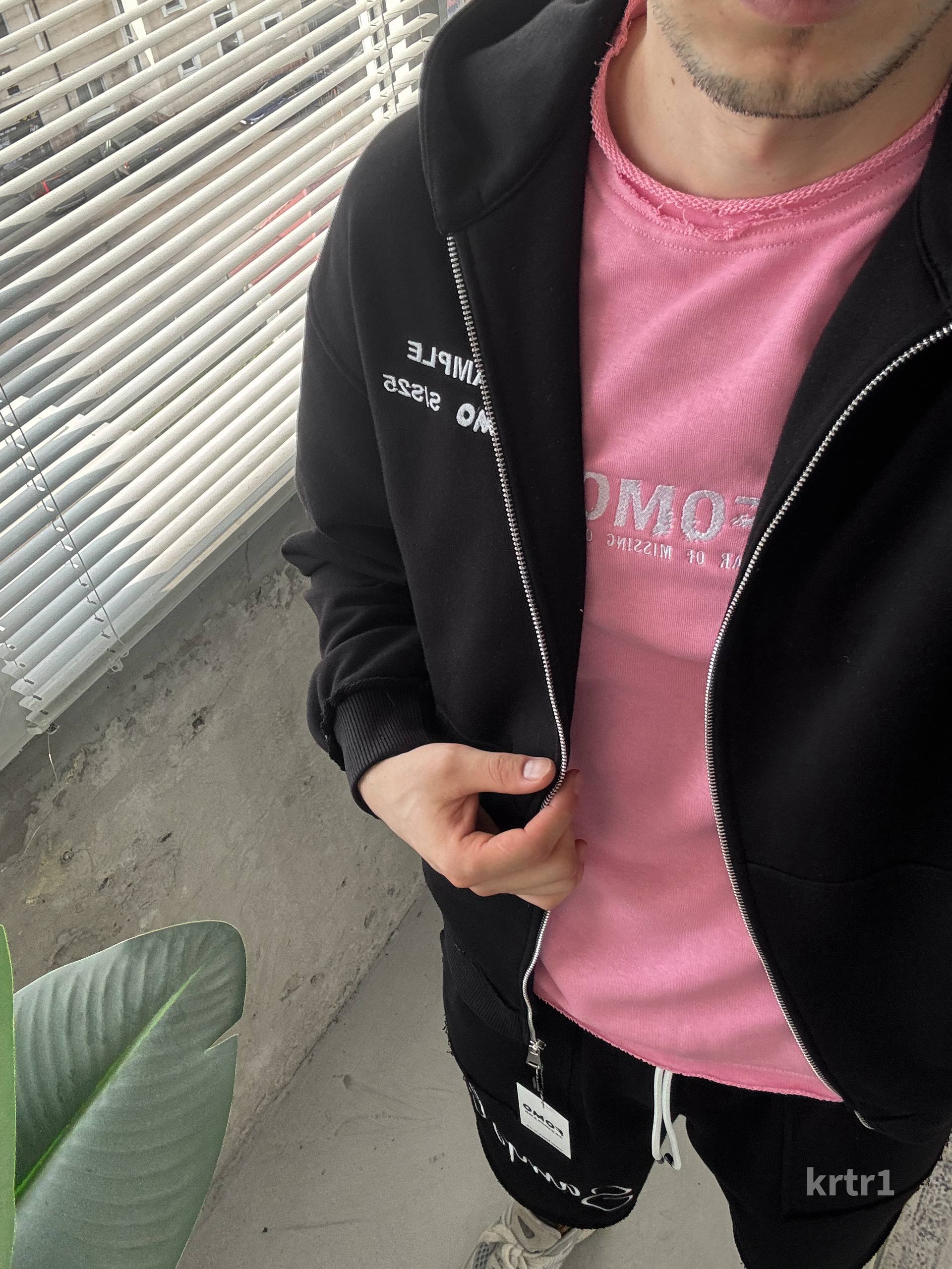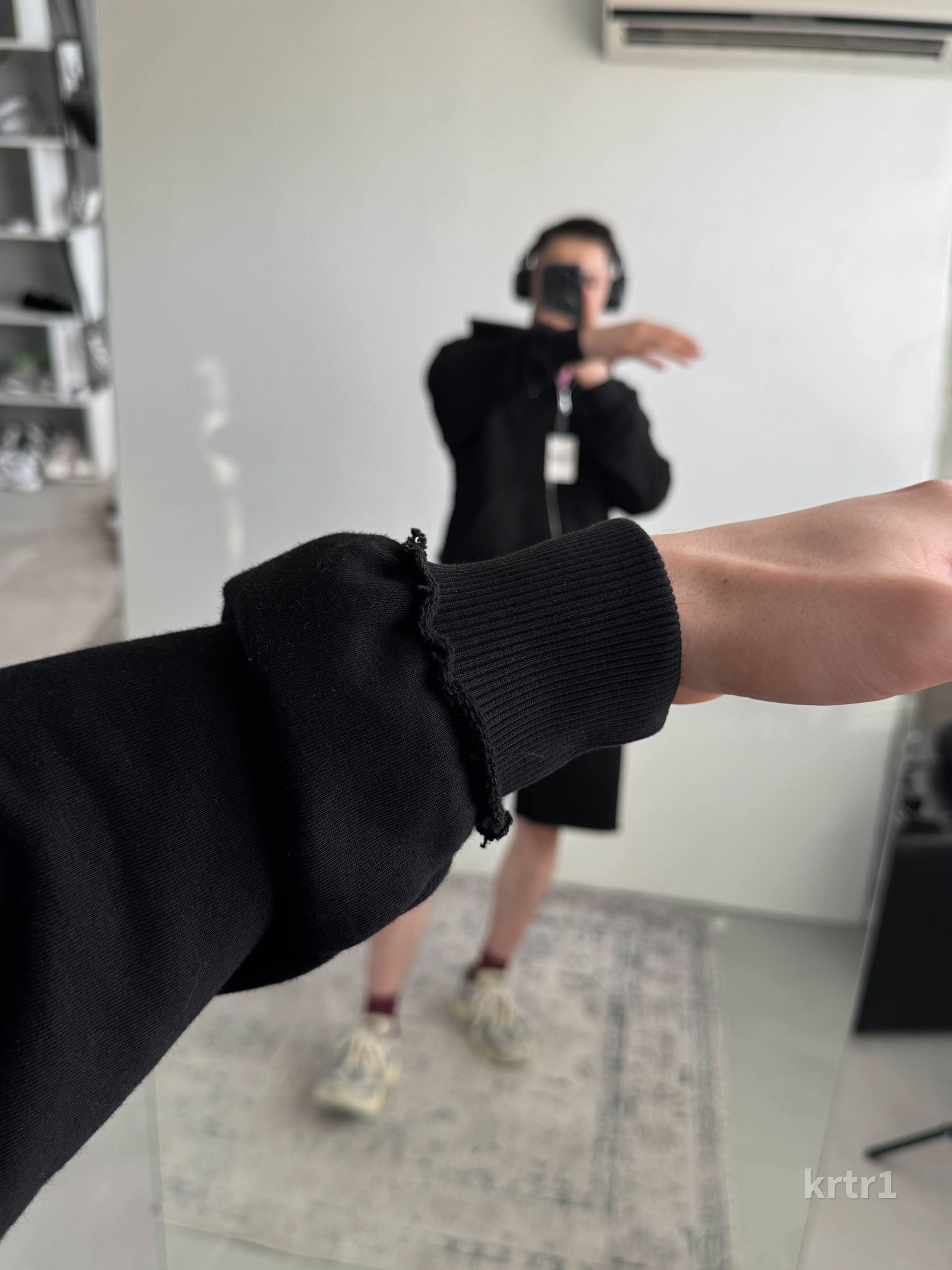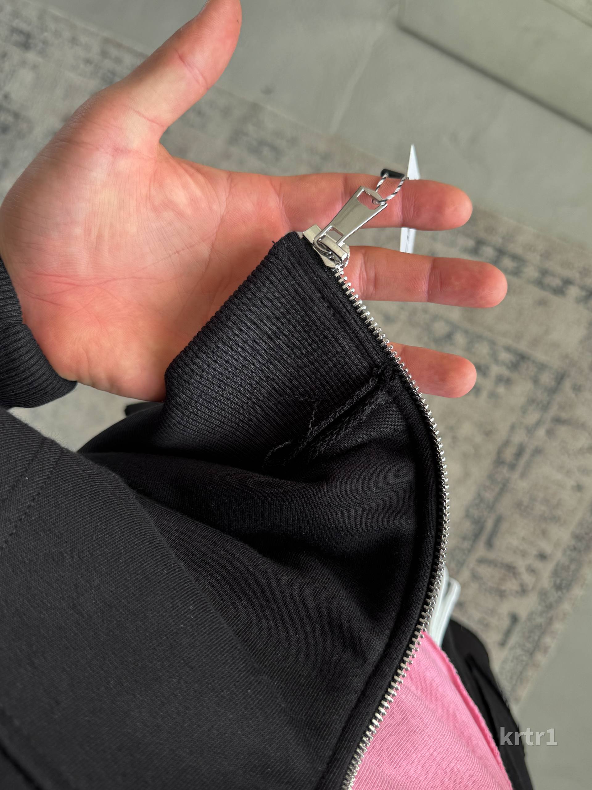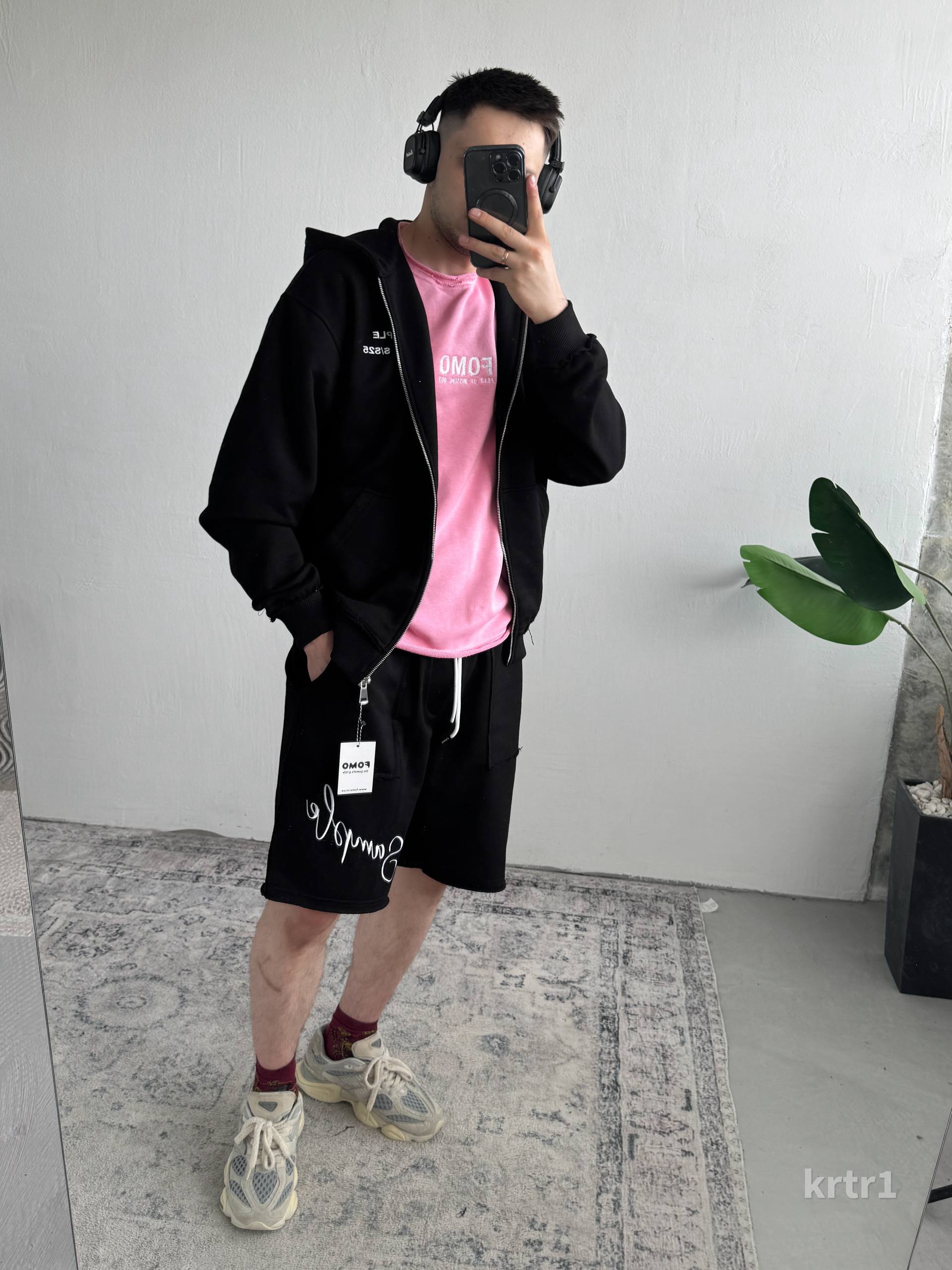 Мужской Черный Костюм на Молнии с Обрезаными Краями – Комплект Зип Худи и Шорты