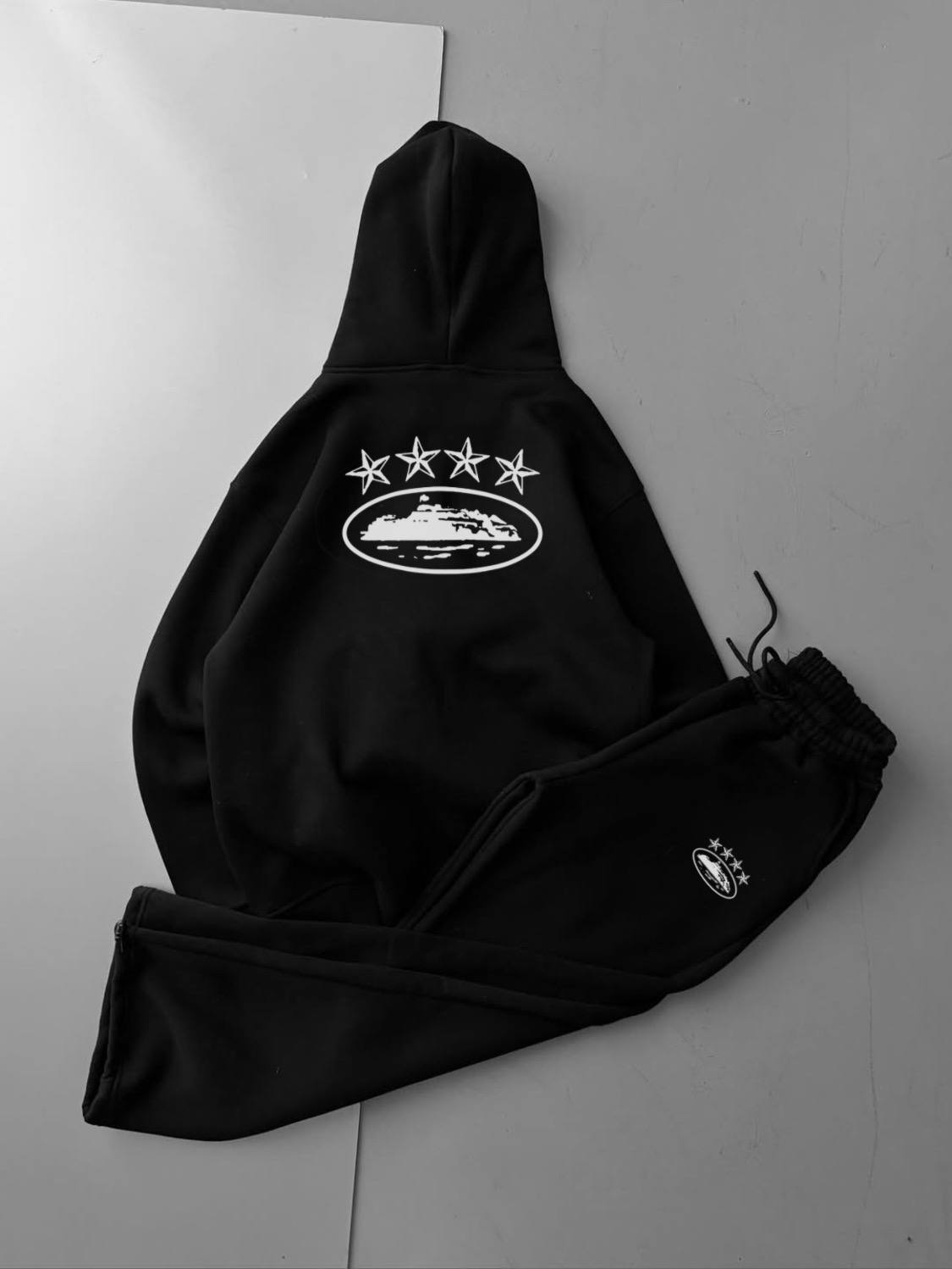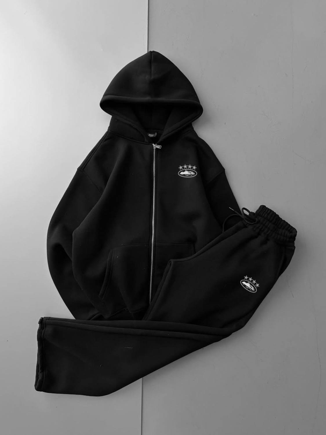 Мужской Черный Спортивный Костюм Зипка Штаны Оверсайз с Принтом на Спине