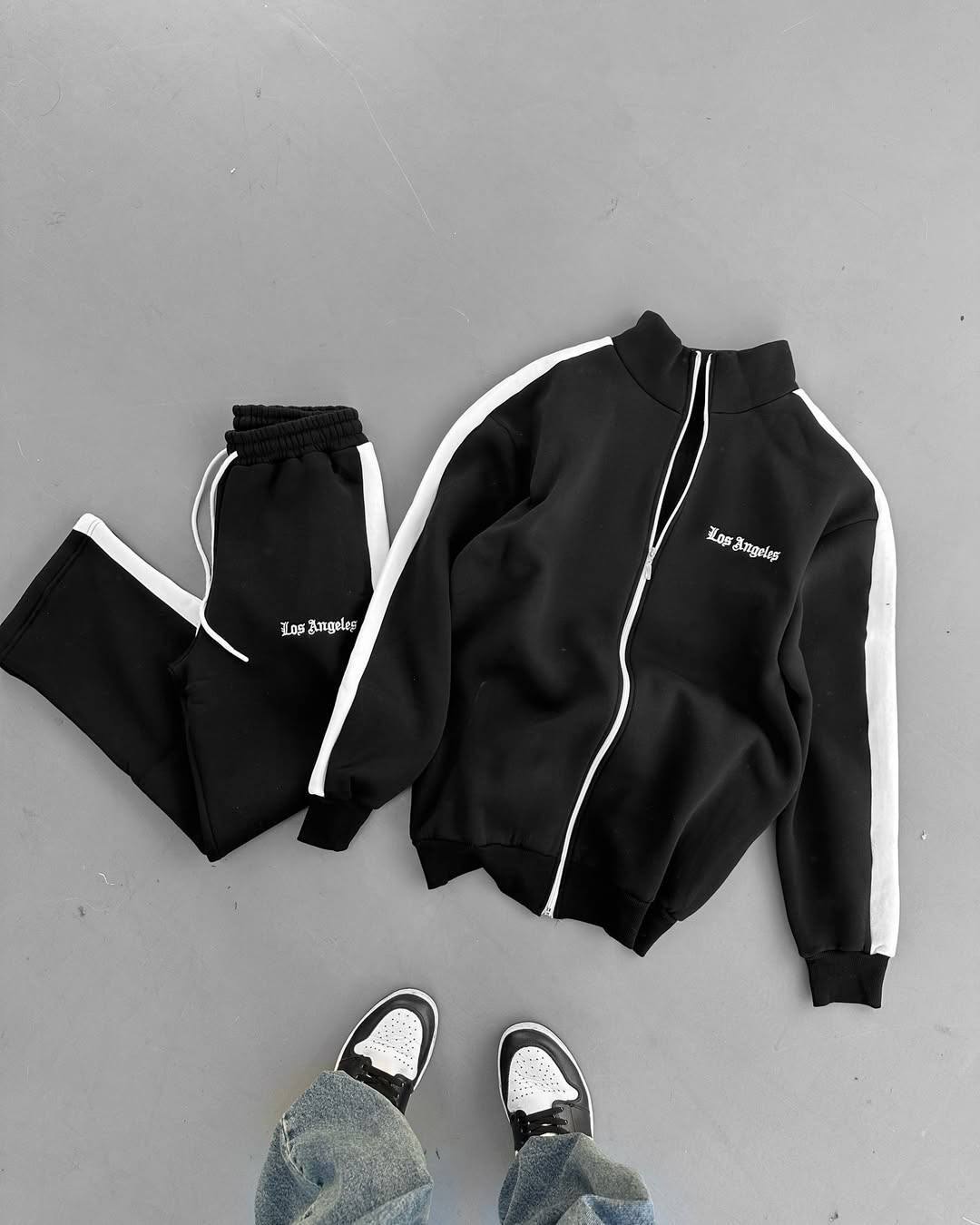 Мужской Черный Спортивный Костюм Зипка Штаны Свободного Кроя с Лампасами
