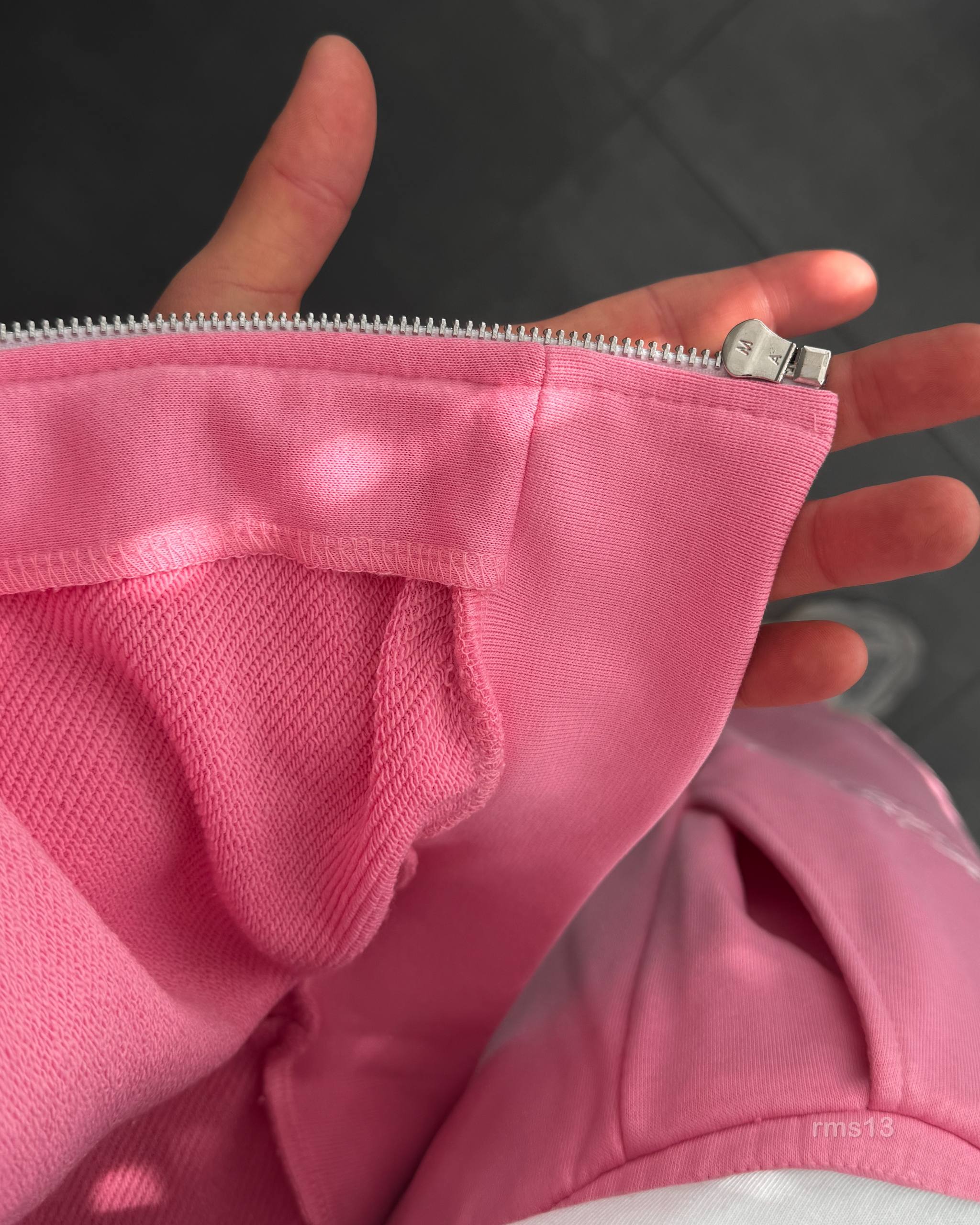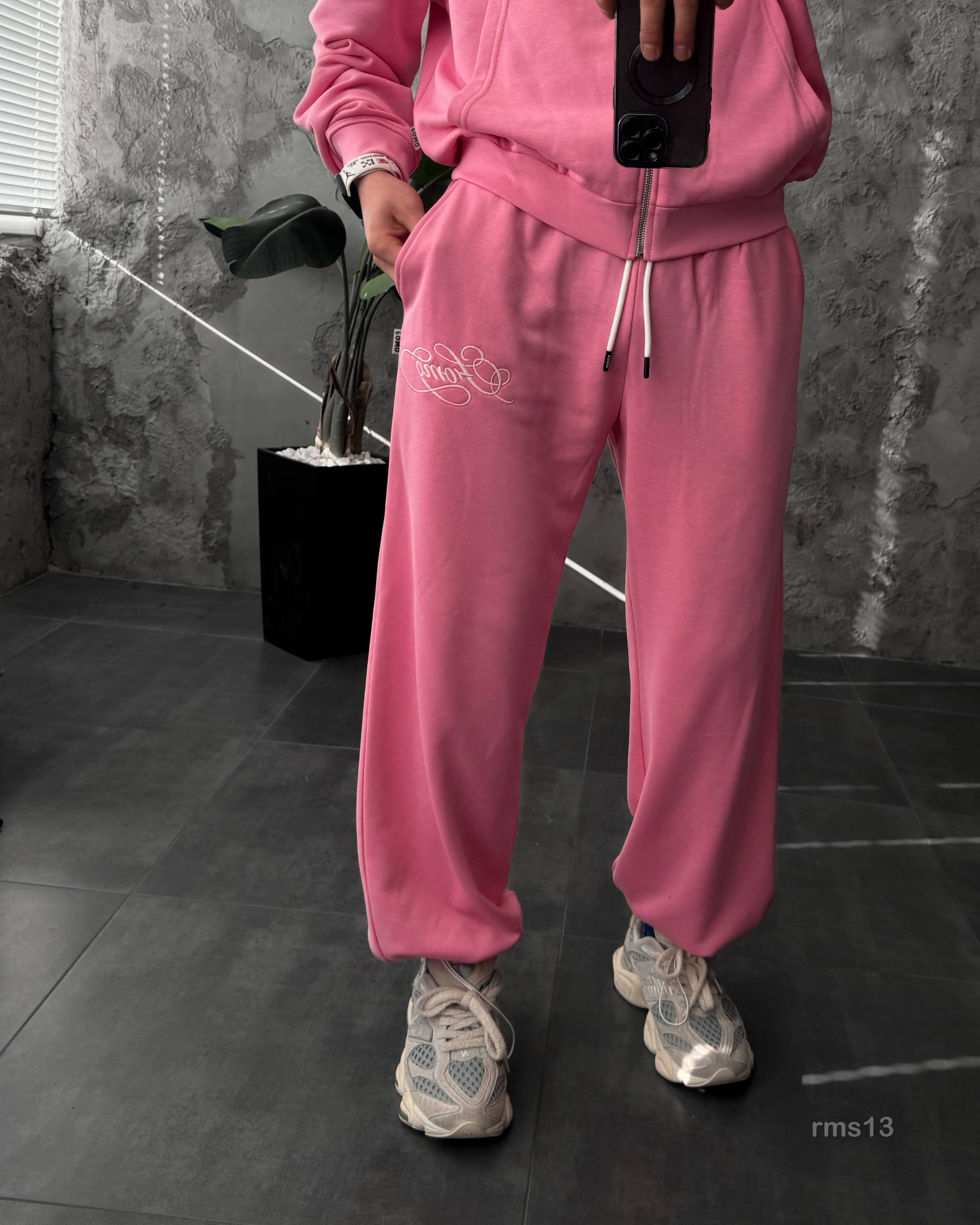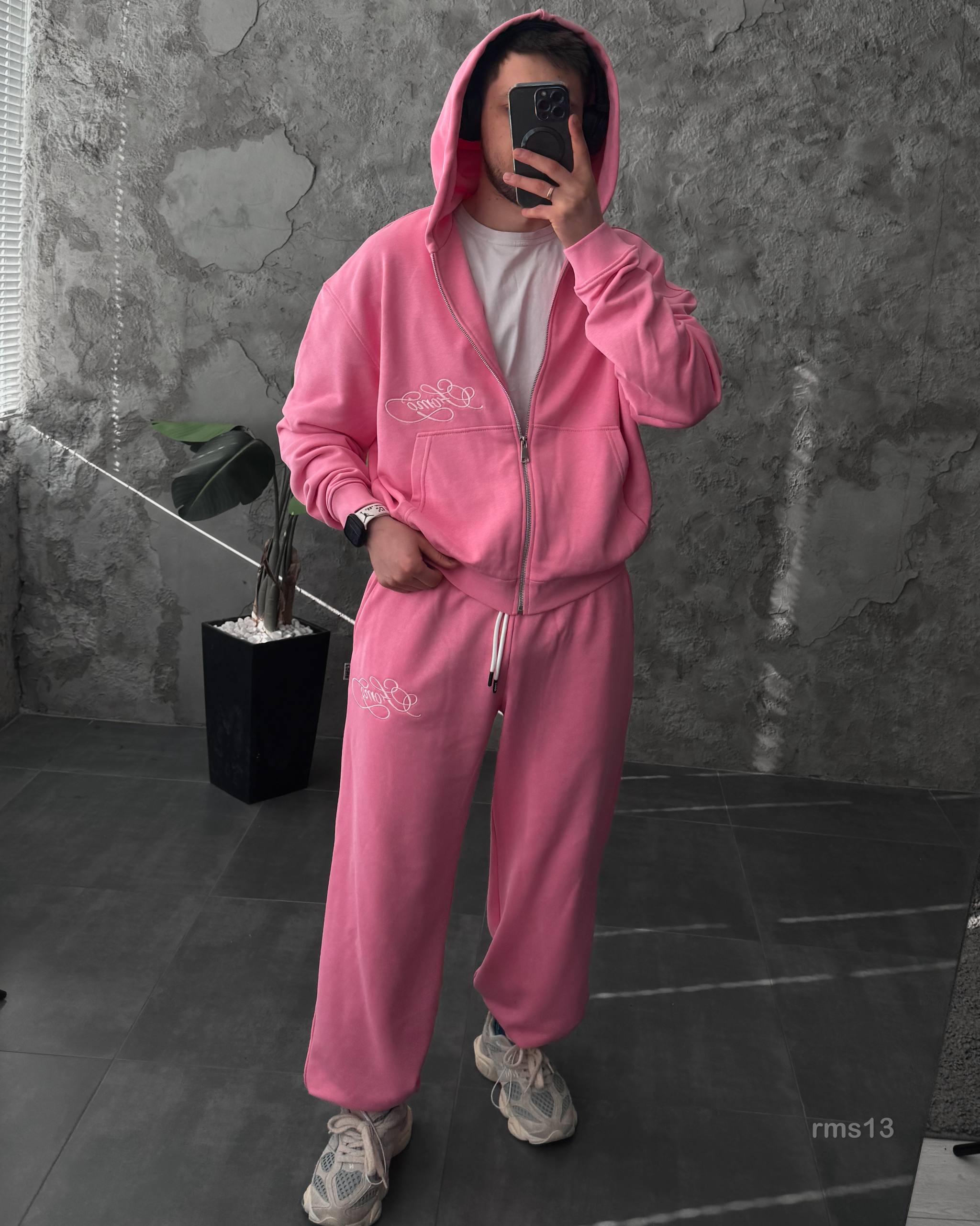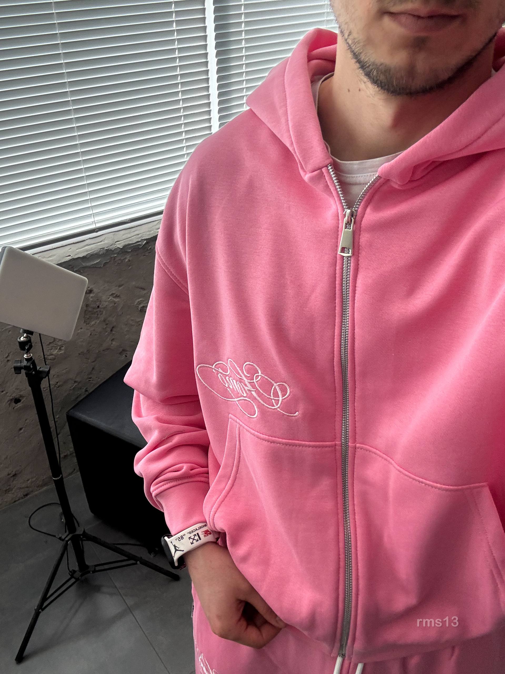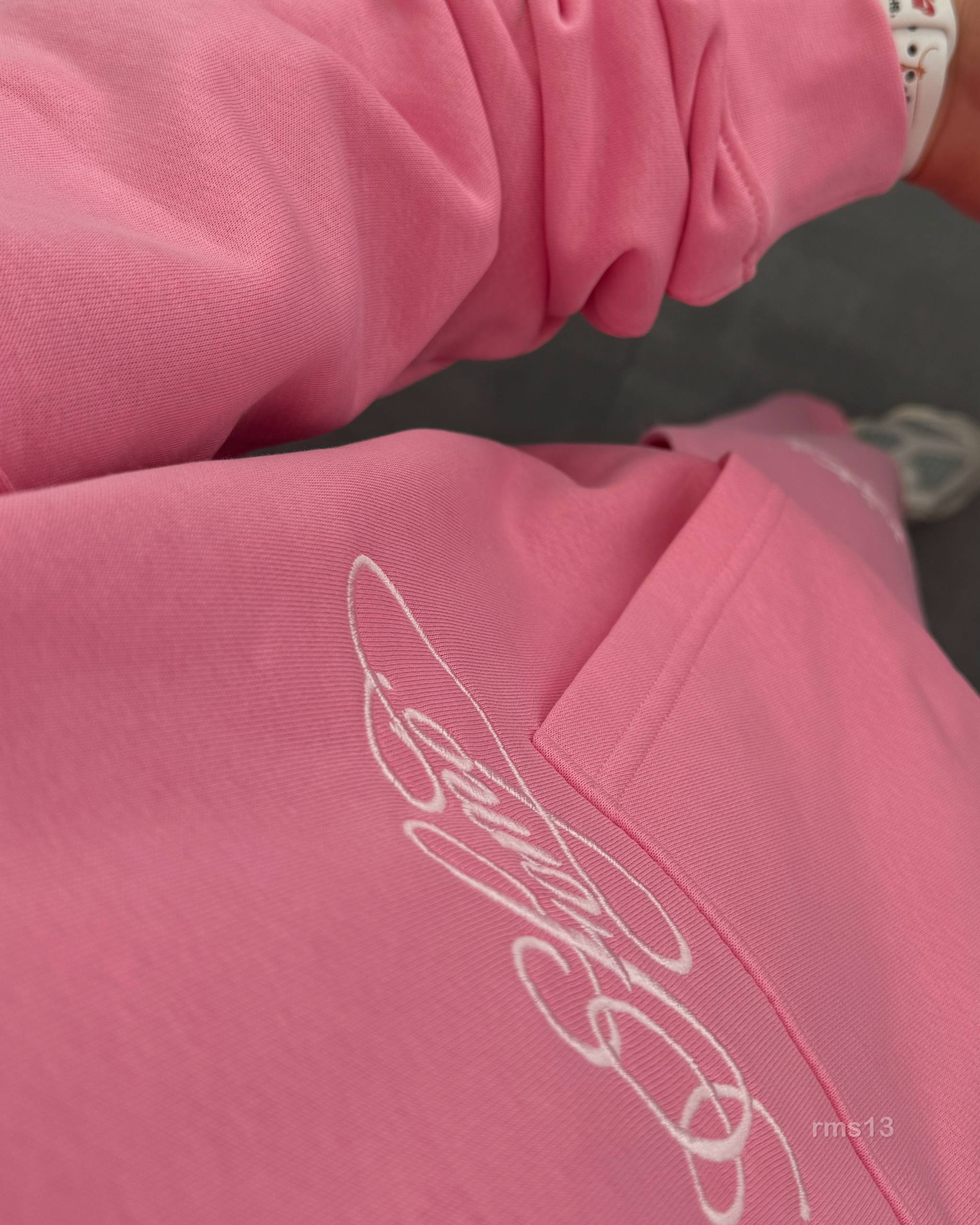 Мужской Розовый Спортивный Костюм Оверсайз на Молнии с Вышивками – Трехнитка Петля