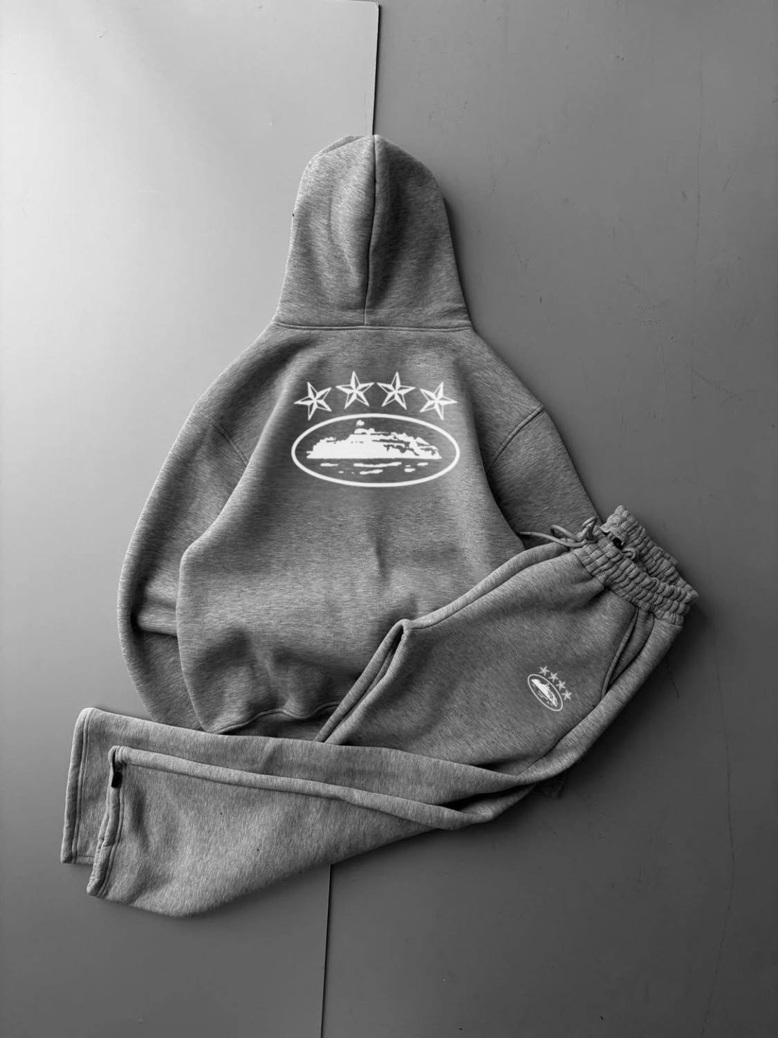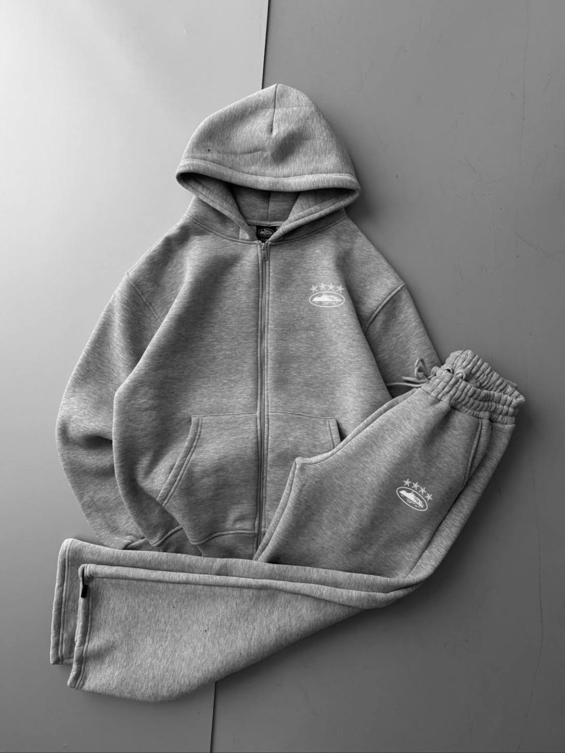 Мужской Серый Спортивный Костюм Зипка Штаны Оверсайз с Принтом на Спине