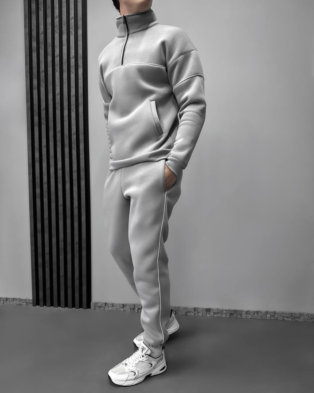 Мужской Базовый Серый Костюм под Горло с Кантом и Коротким Замком – Утепленный на Флисе