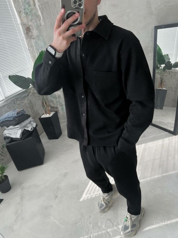 Мужской Базовый Черный Костюм Рубашка Штаны Свободного Кроя