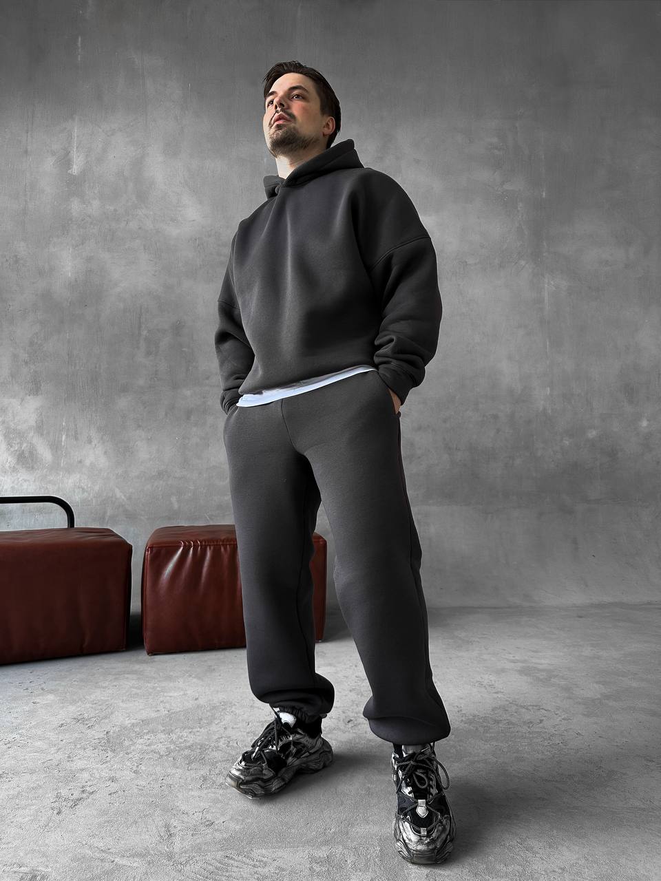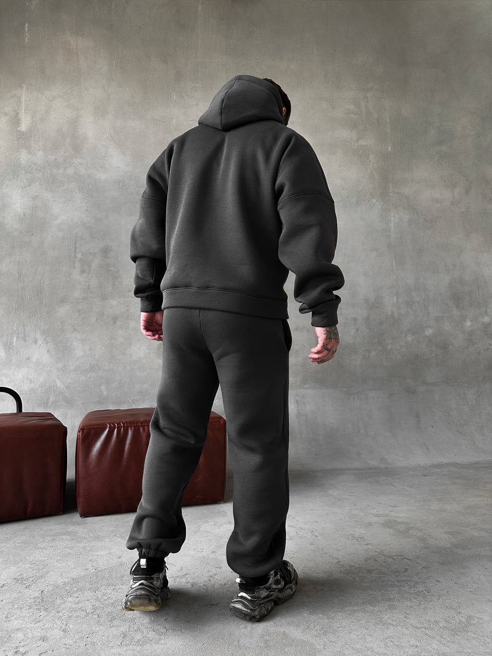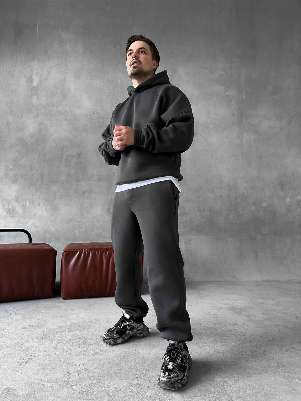 Мужской Базовый Теплый Графитовый Спортивный Костюм с Начесом (Толстовка + Штаны)