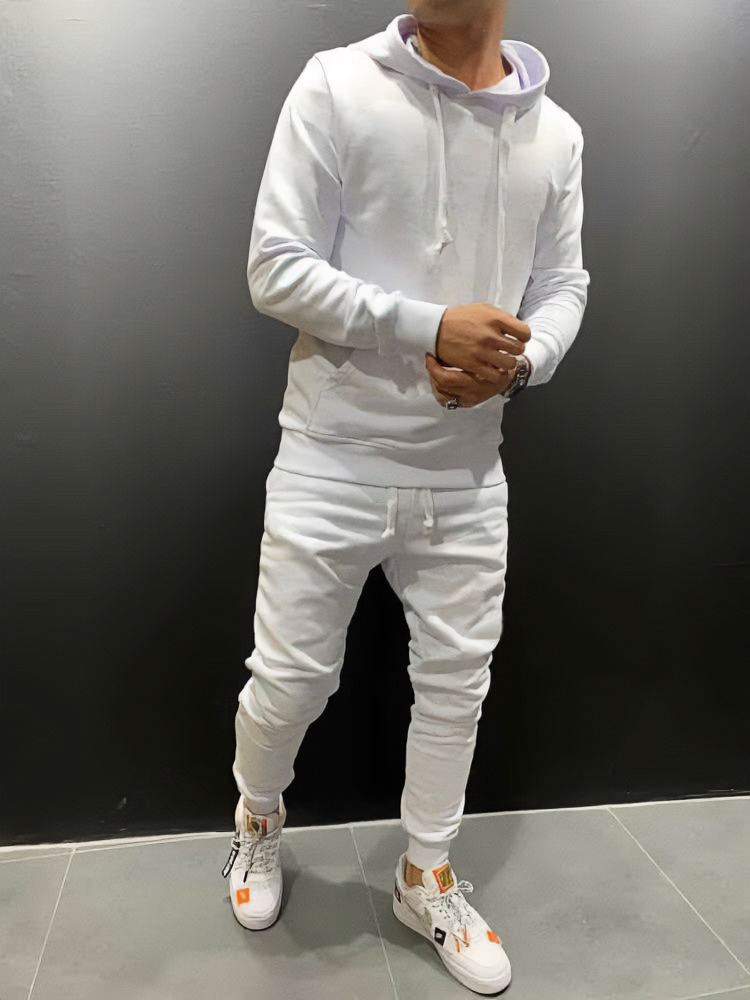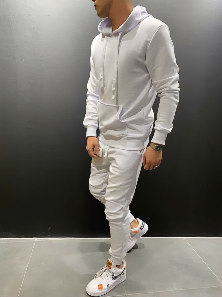 Мужской Белый Спортивный Костюм Трехнитка на Флисе – Худи + Штаны Зауженные к Низу