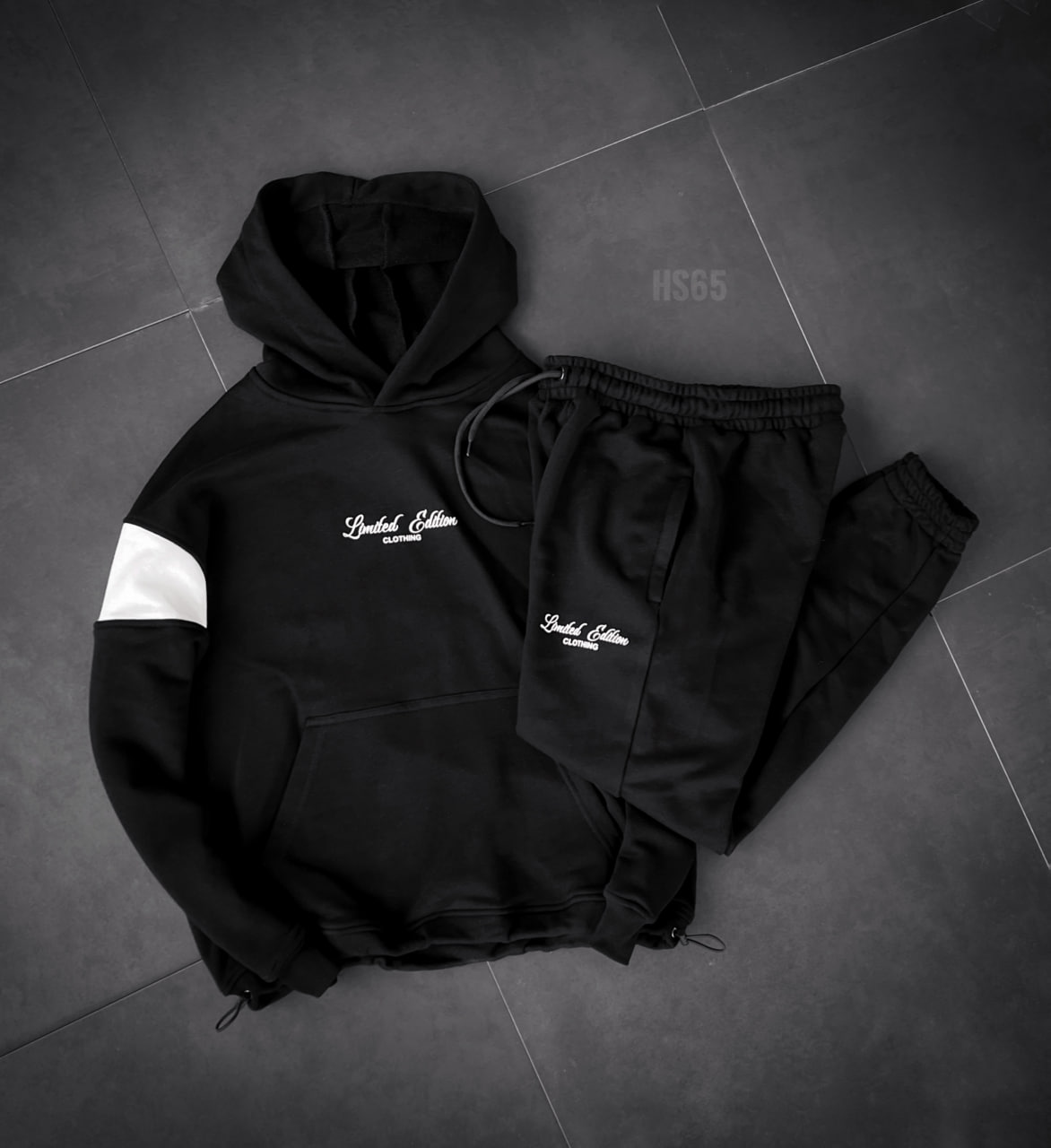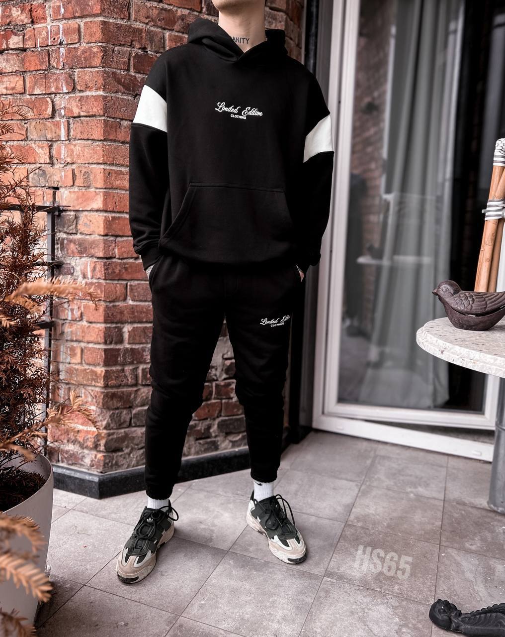 Мужской Черный Костюм с Белыми Вставками – Худи Оверсайз + Штаны Джоггеры