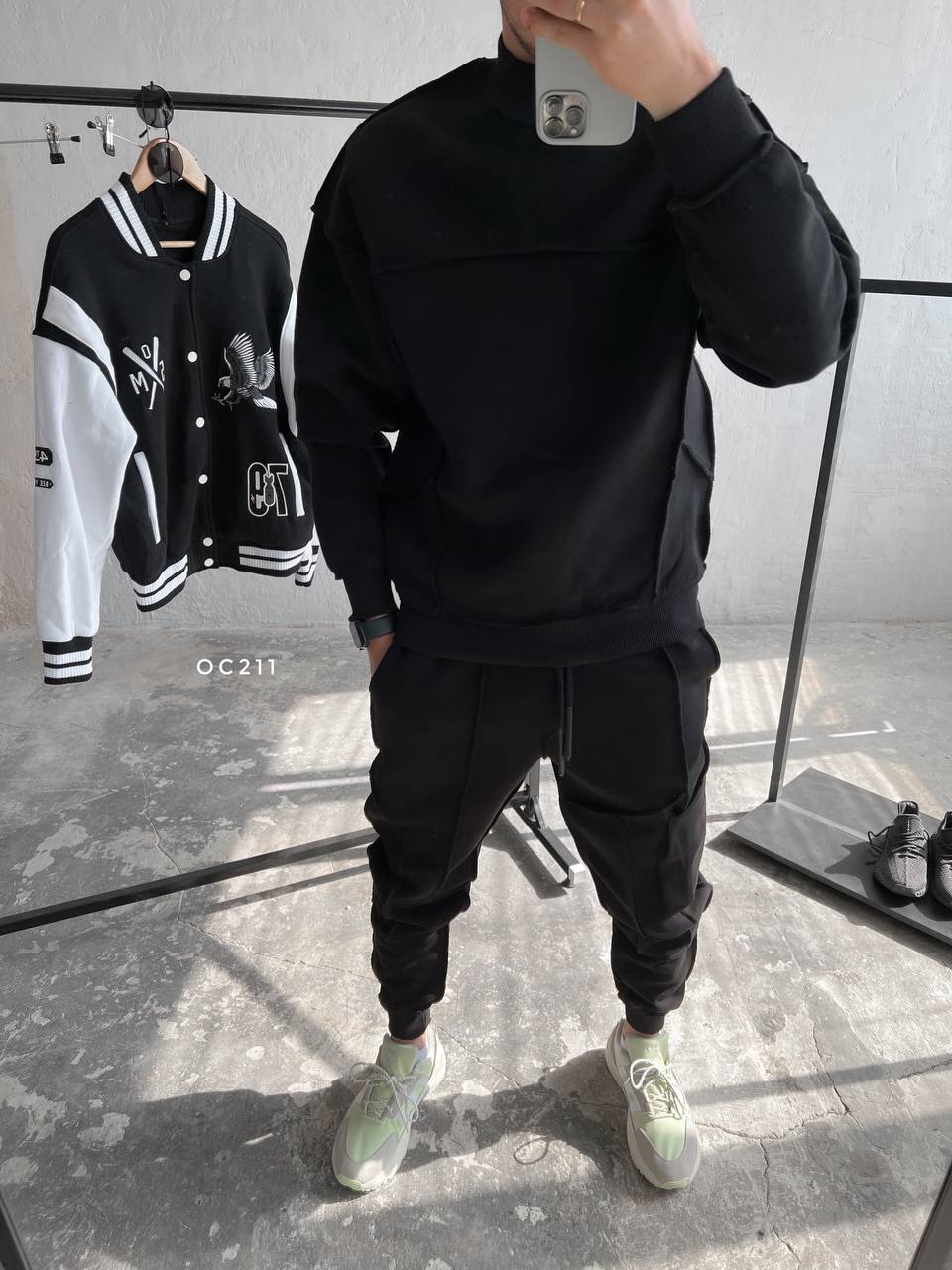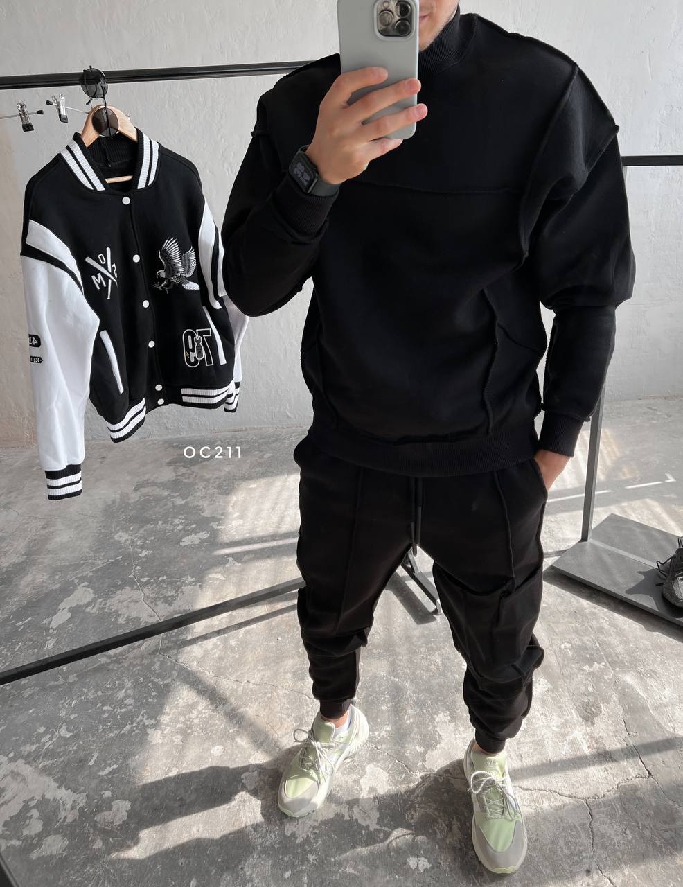 Мужской Черный Костюм со Швами Наружу – Свитшот Оверсайз + Джоггеры
