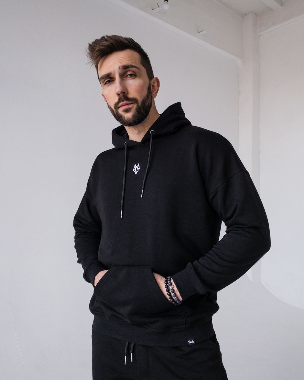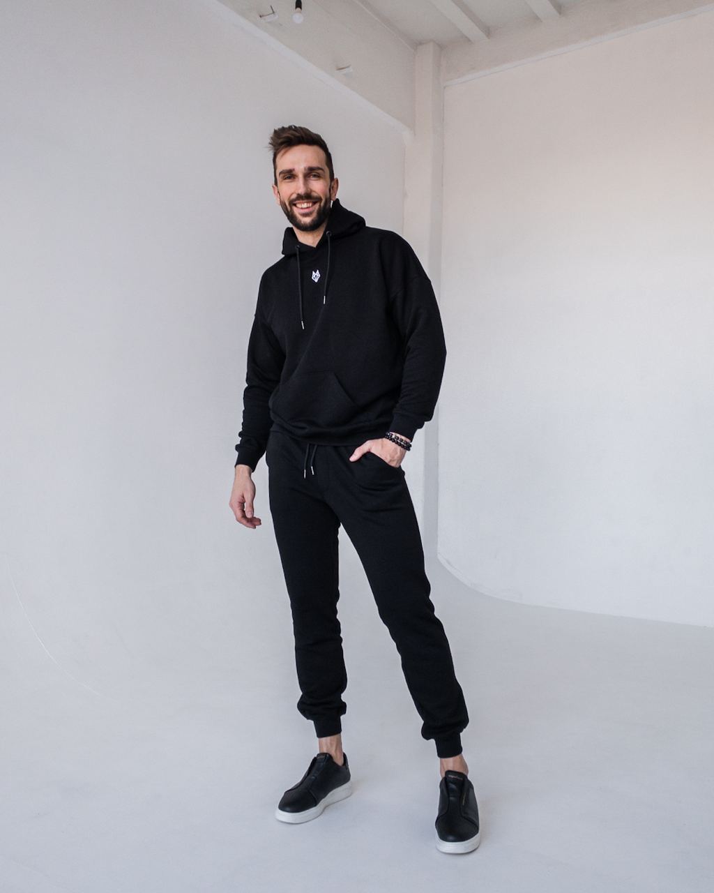 Мужской Черный Спортивный Костюм Базовый – Худи с Вышитым Значком + Штаны