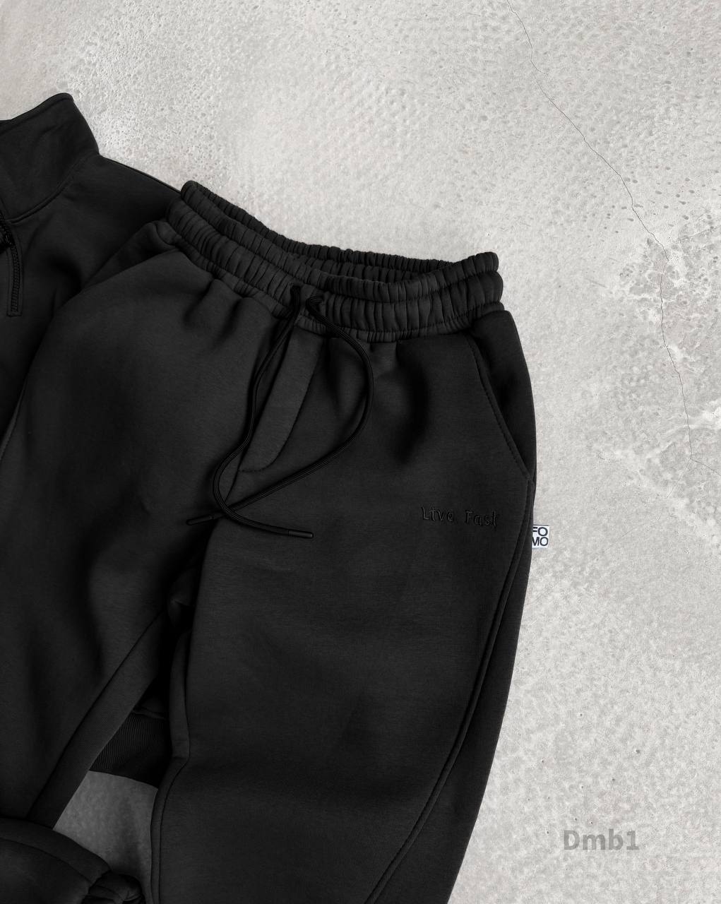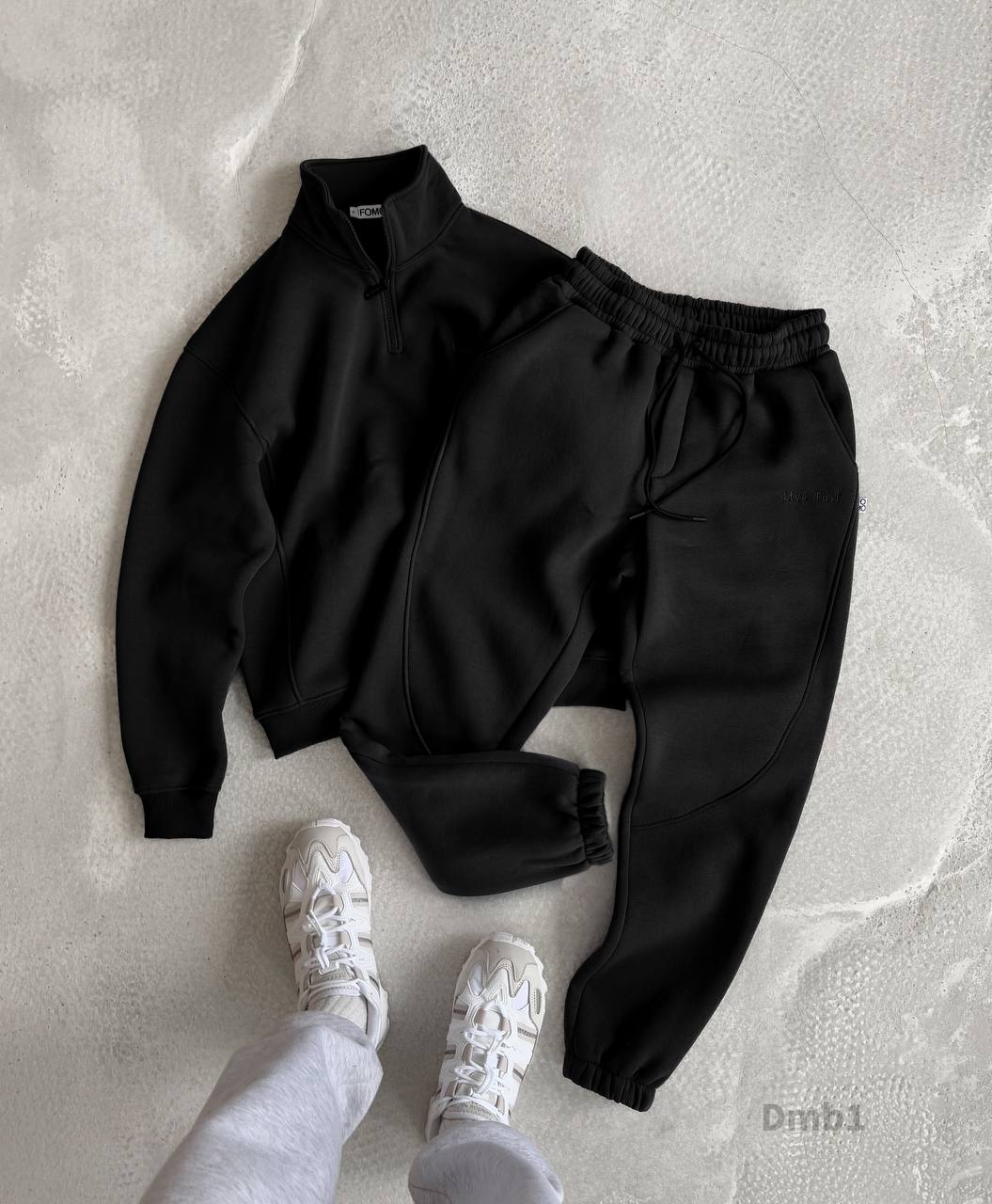 Мужской Черный Спортивный Костюм Теплый на Флисе – Свитшот с Высокой Горловиной + Штаны Джоггеры
