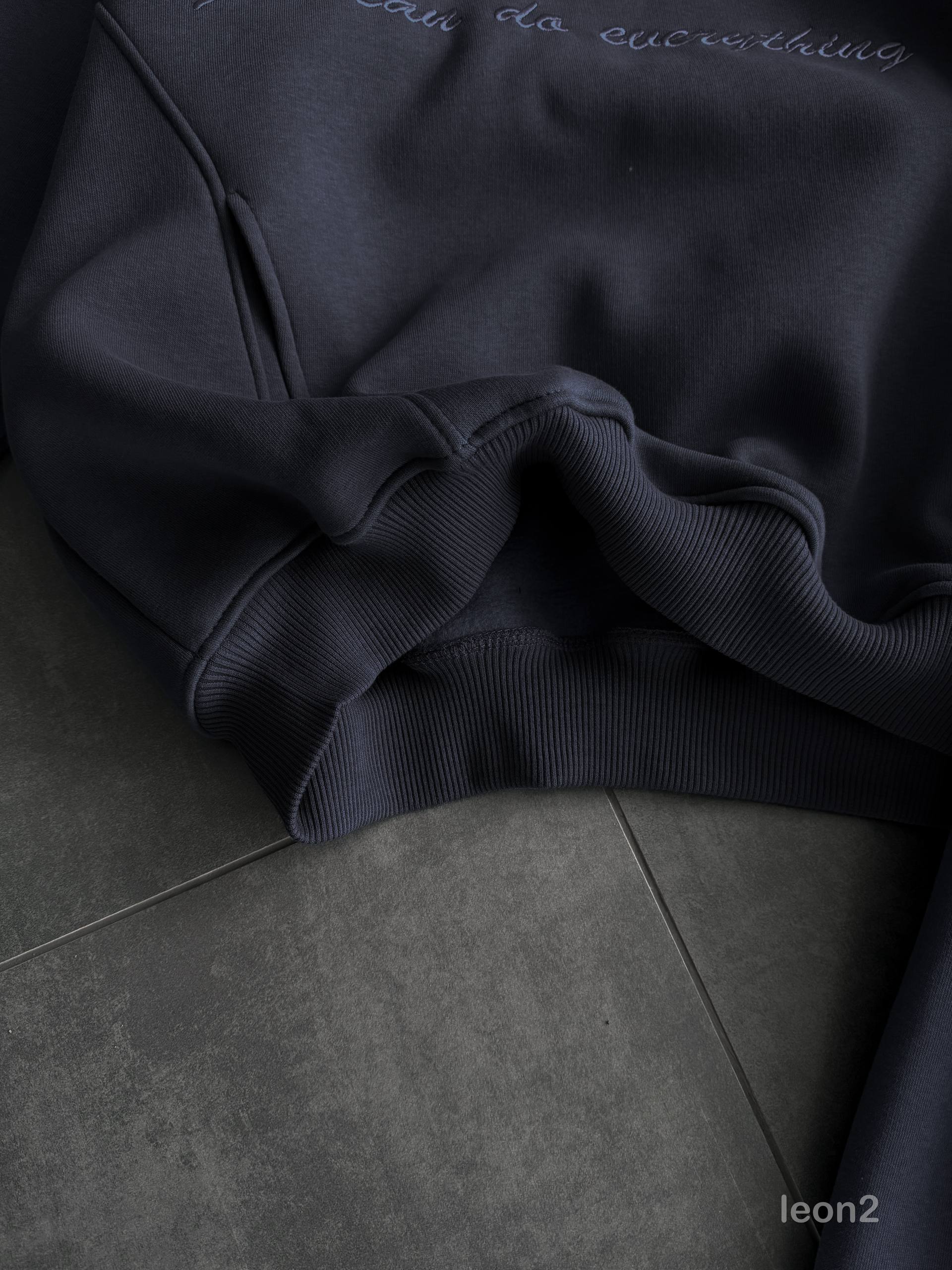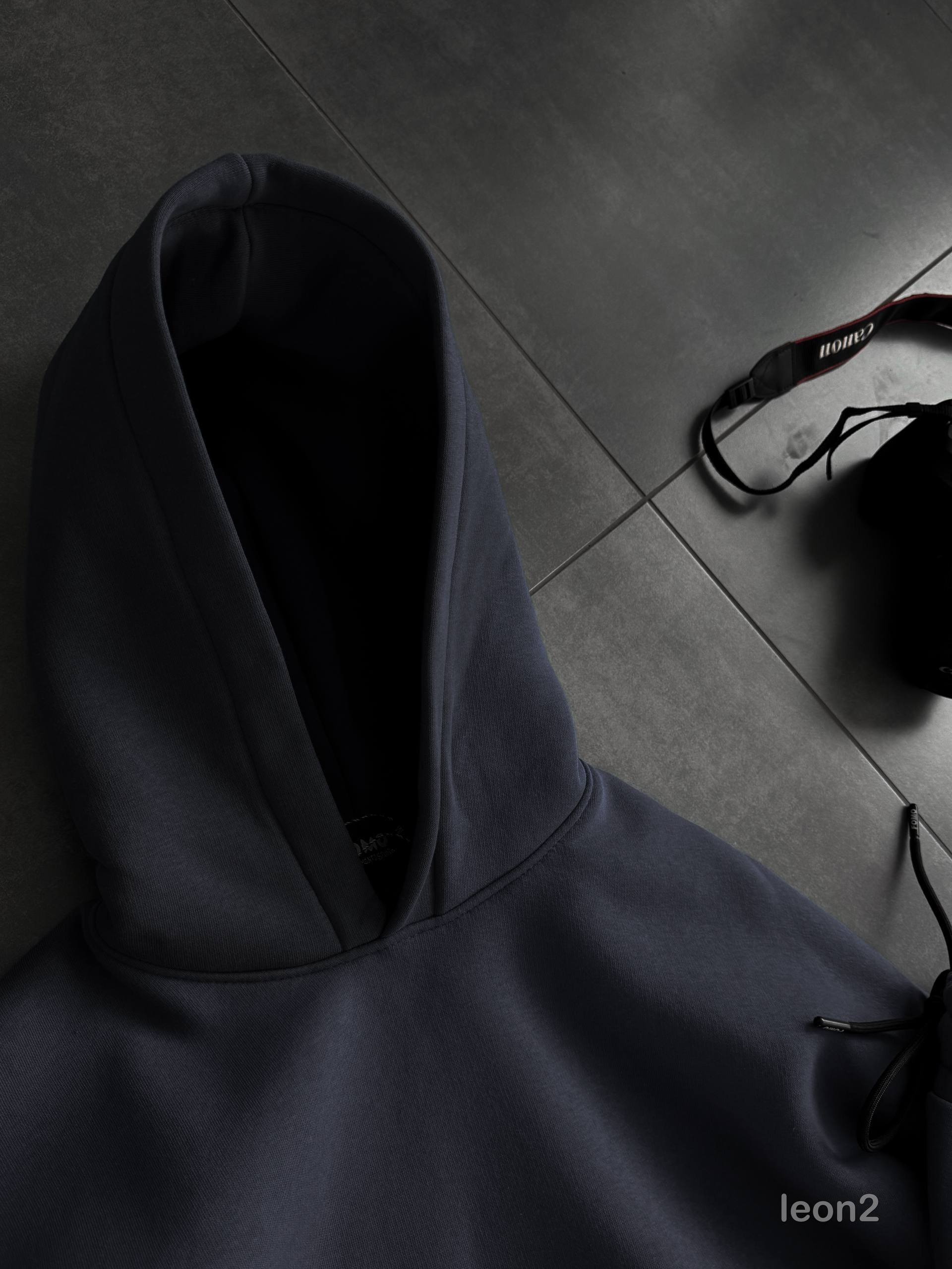 Мужской Графитовый Спортивный Костюм Худи Штаны с Вышитой Надписью – Утепленный на Флисе