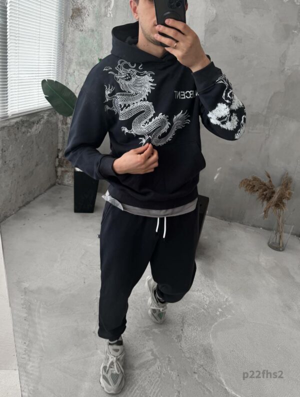 Мужской Графитовый Спортивный Костюм Принт Дракон (Худи + Штаны)