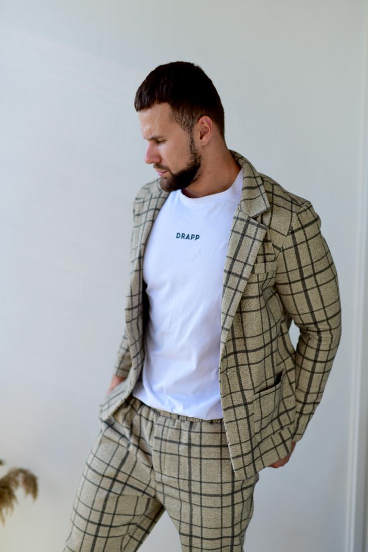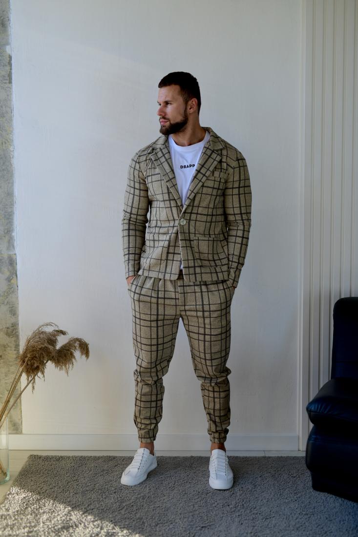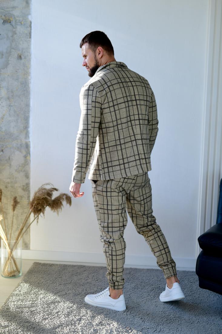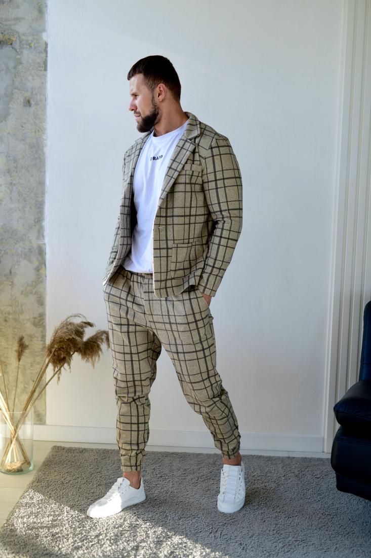 Мужской Классический Песочный Костюм в Клетчатый Принт (Жакет + Штаны)