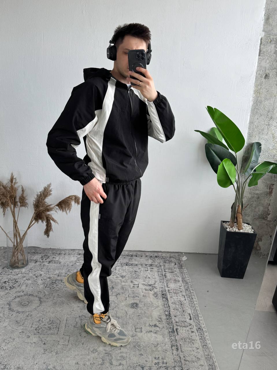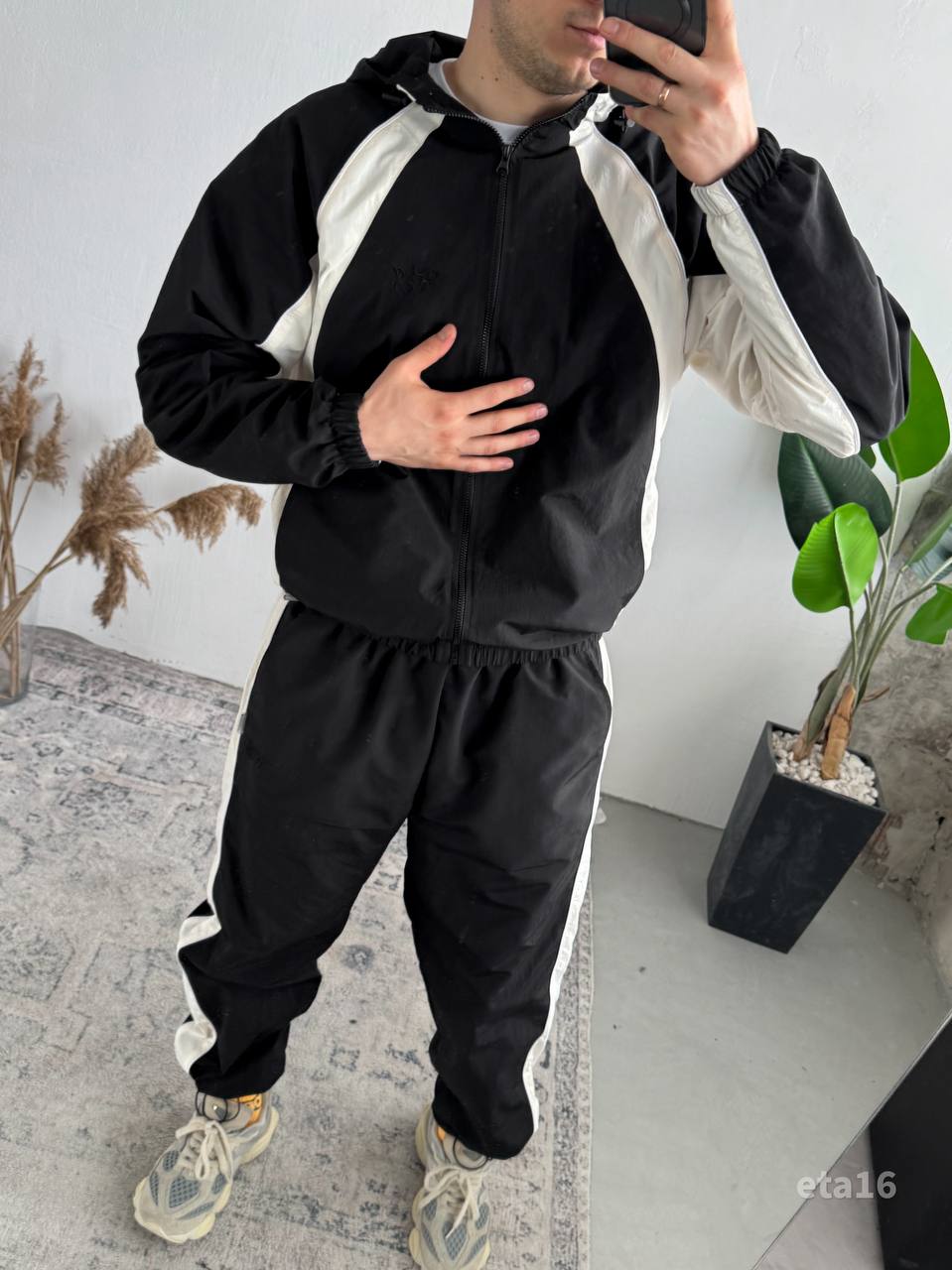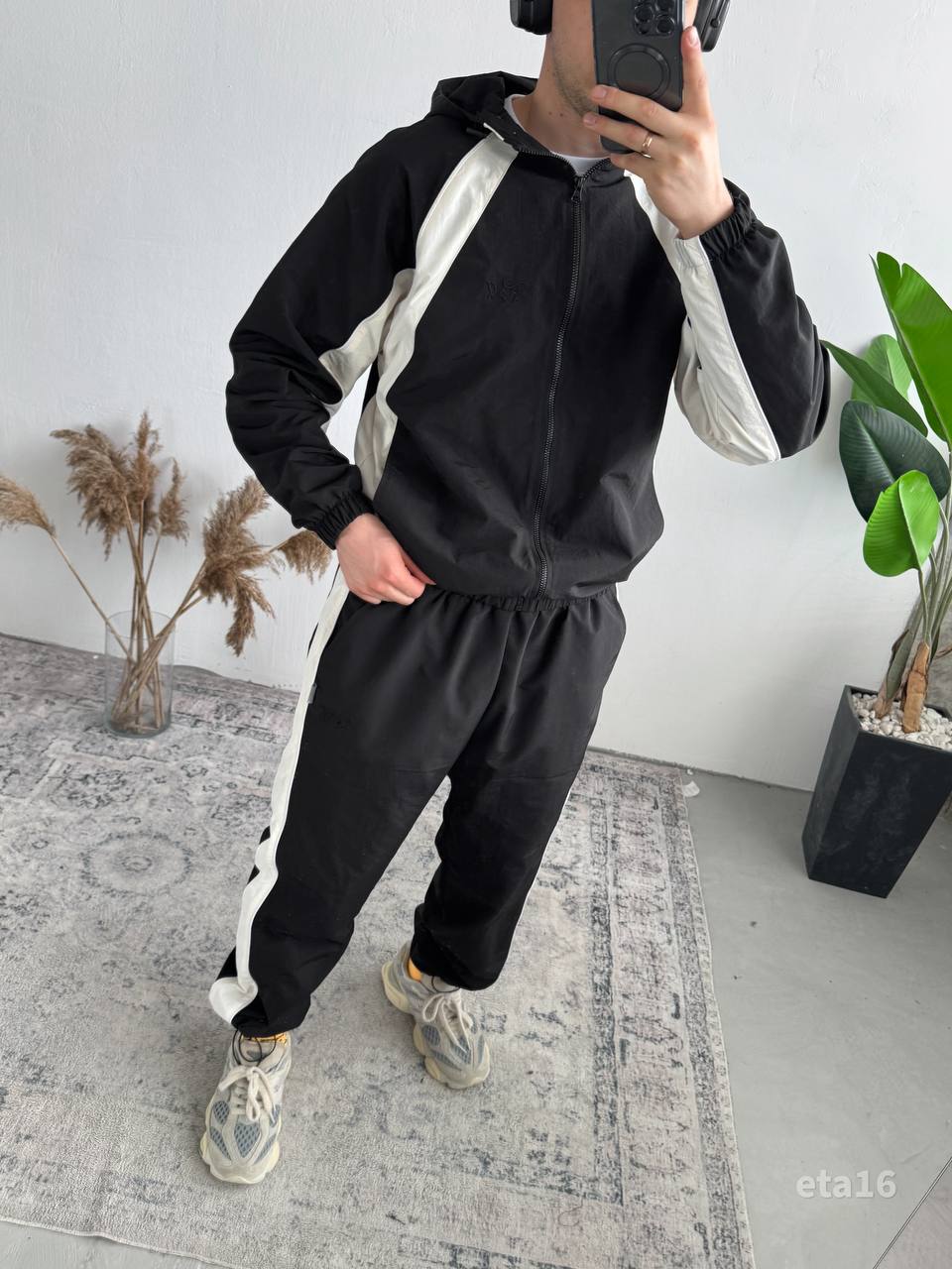 Мужской Легкий Свободный Черный Спортивный Костюм Плащевка на Молнии с Лампасами