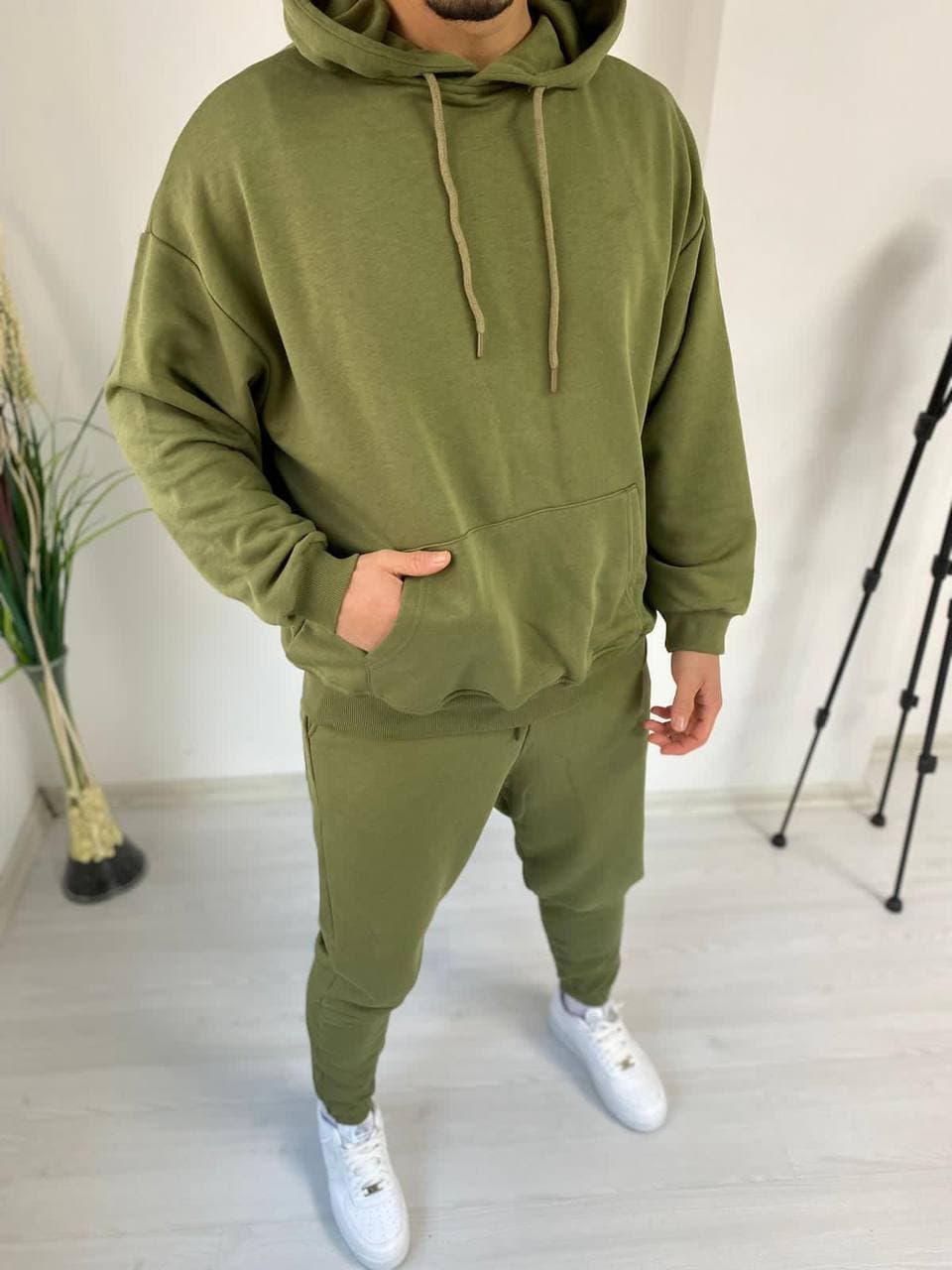 Мужской Спортивный Костюм Хаки Базовый – Оверсайз Худи и Штаны База