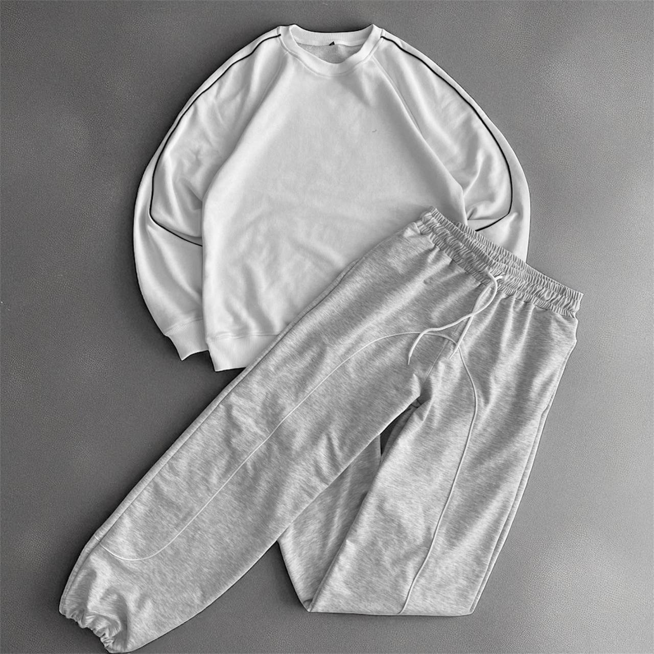 Мужской Спортивный Костюм Оверсайз с Кантом – Белый Свитшот + Широкие Серые Штаны
