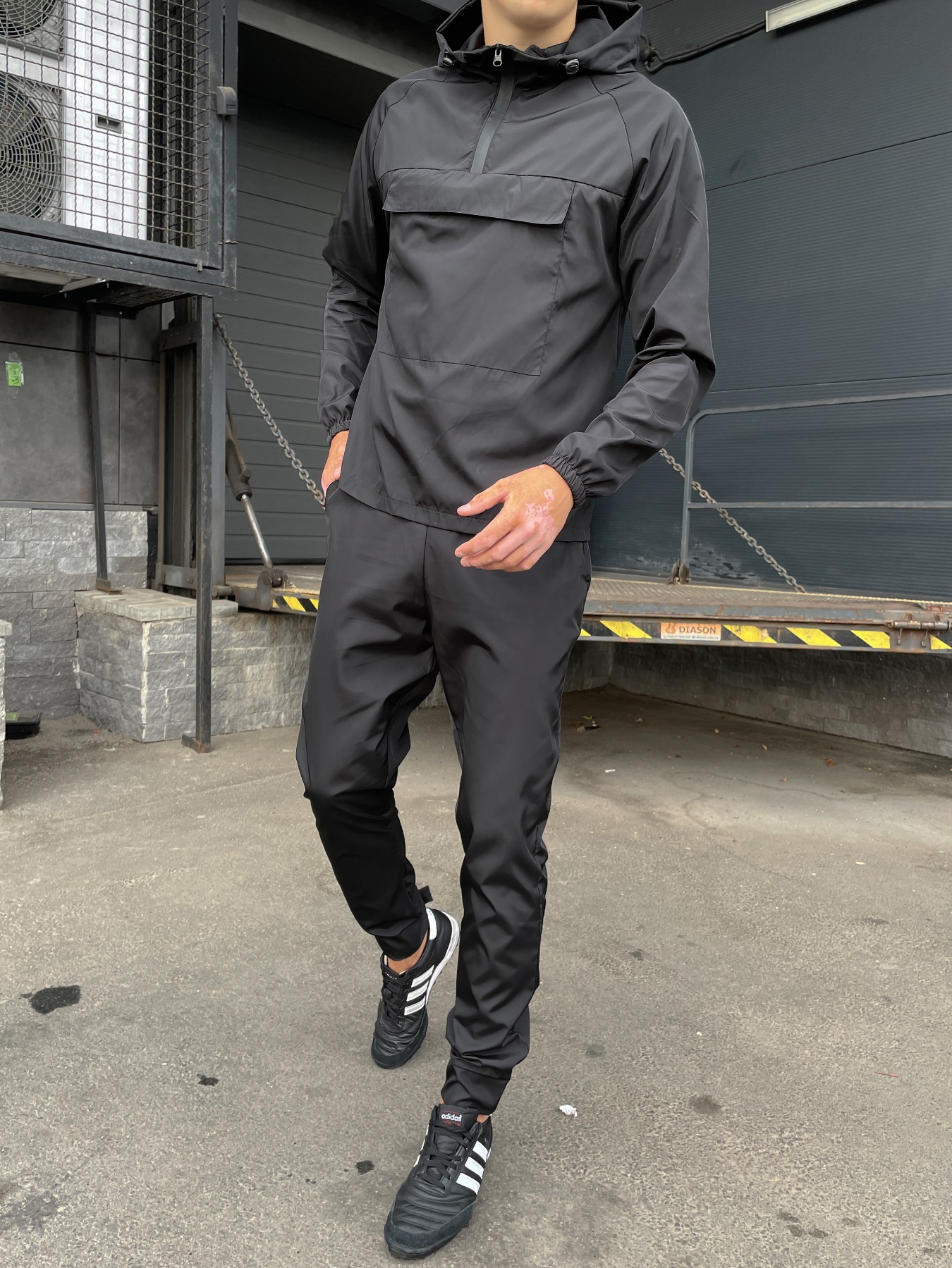 Мужской Спортивный Костюм в Черном Цвете Легкий на Манжетах (Анорак + Штаны)