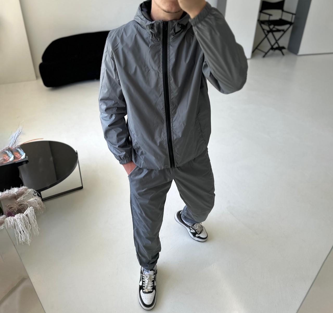 Мужской Темно-Серый Костюм Комплект Плащевка на Молнии (Ветровка + Штаны)