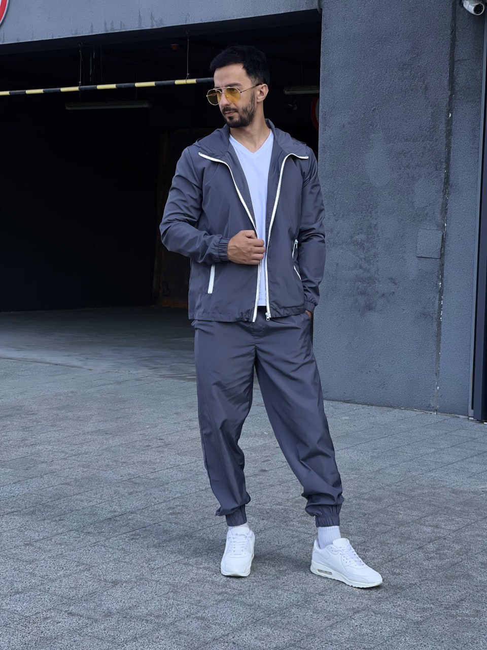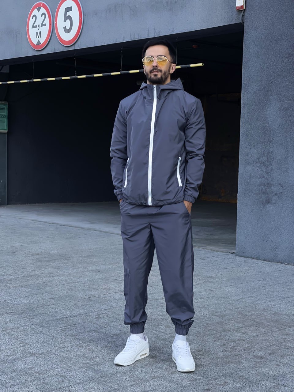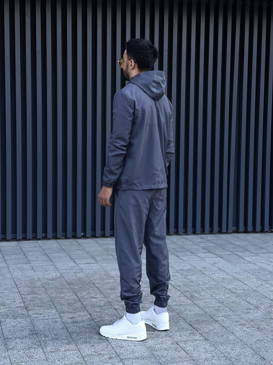 Мужской Темно-Серый Костюм Плащевка – Ветровка на Змейке + Штаны с Манжетами