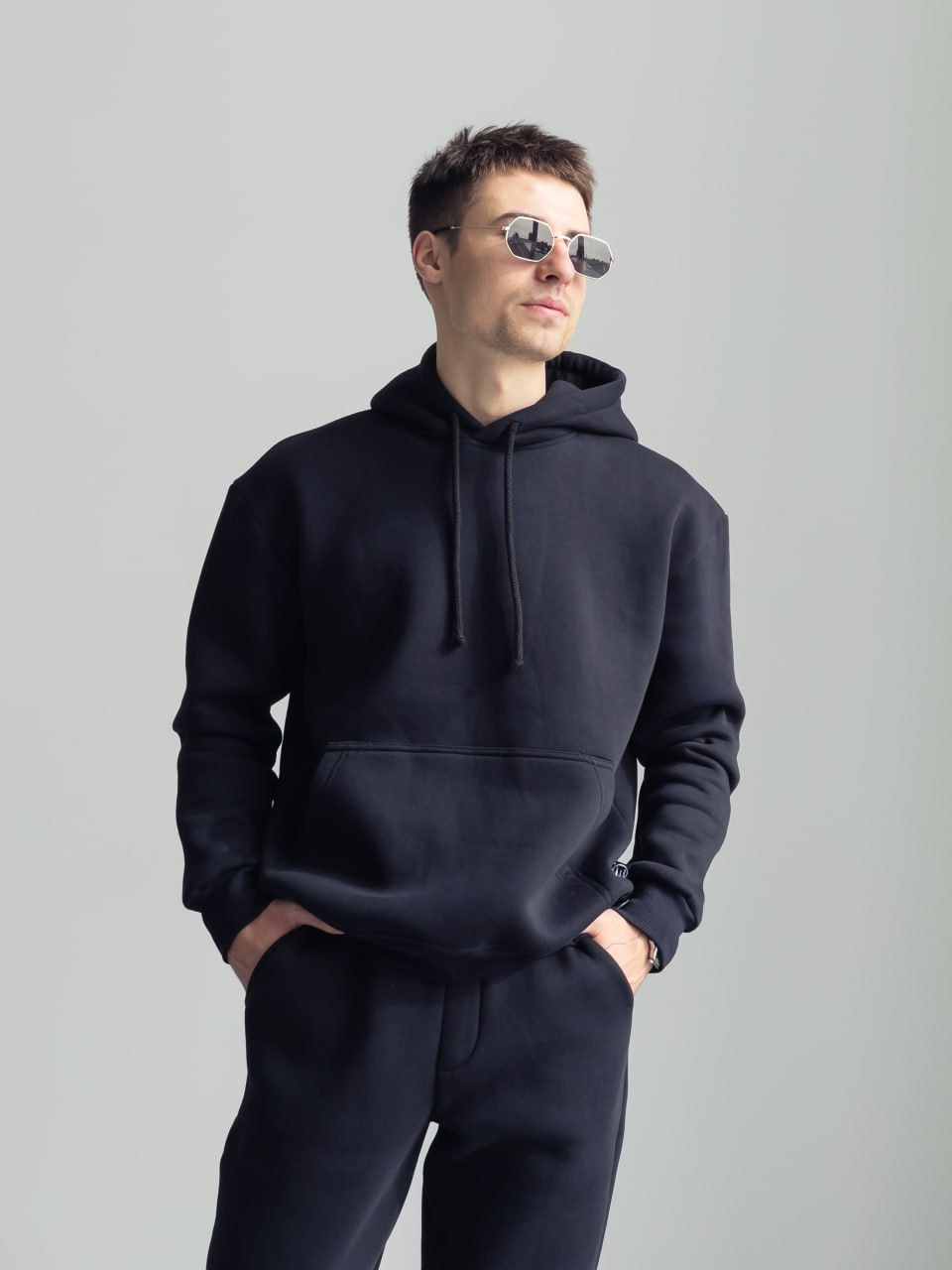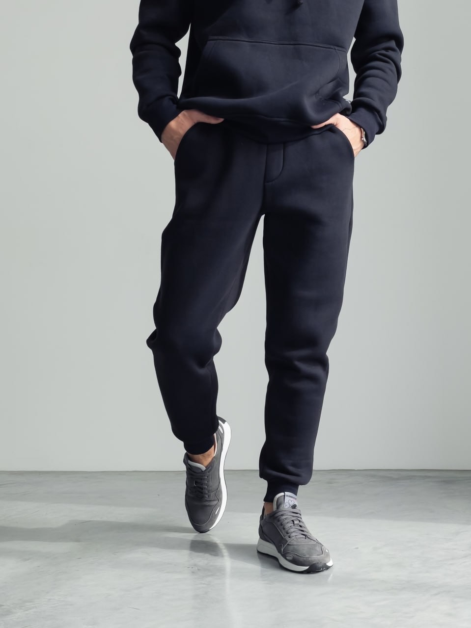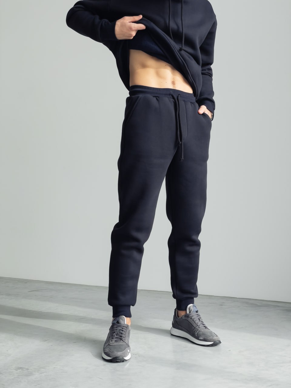Мужской Теплый Базовый Спортивный Костюм Темно-Синего Цвета Пенье на Флисе (Худи + Джоггеры)
