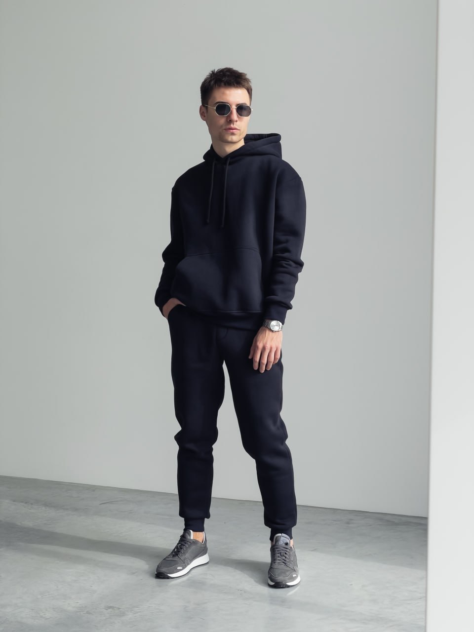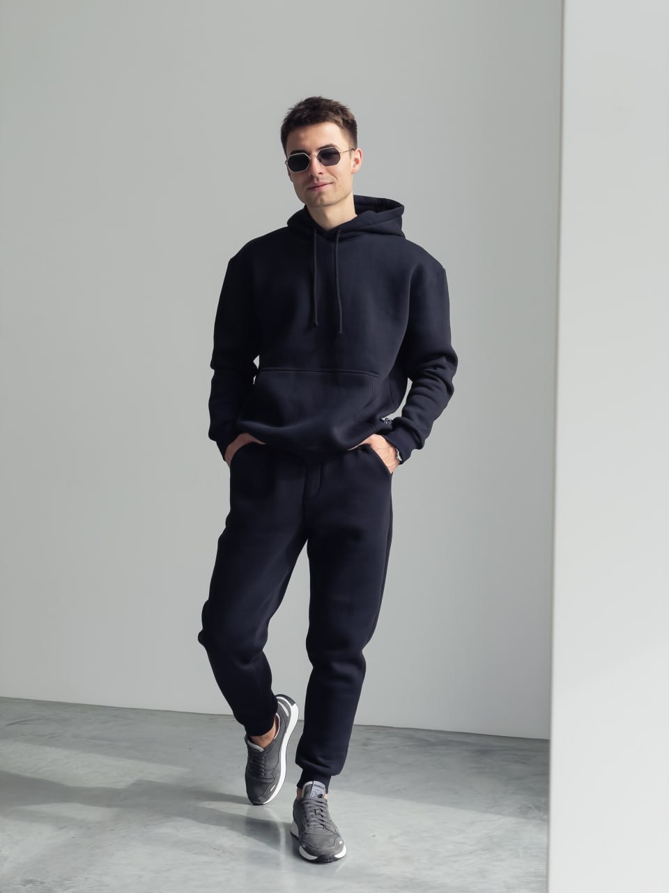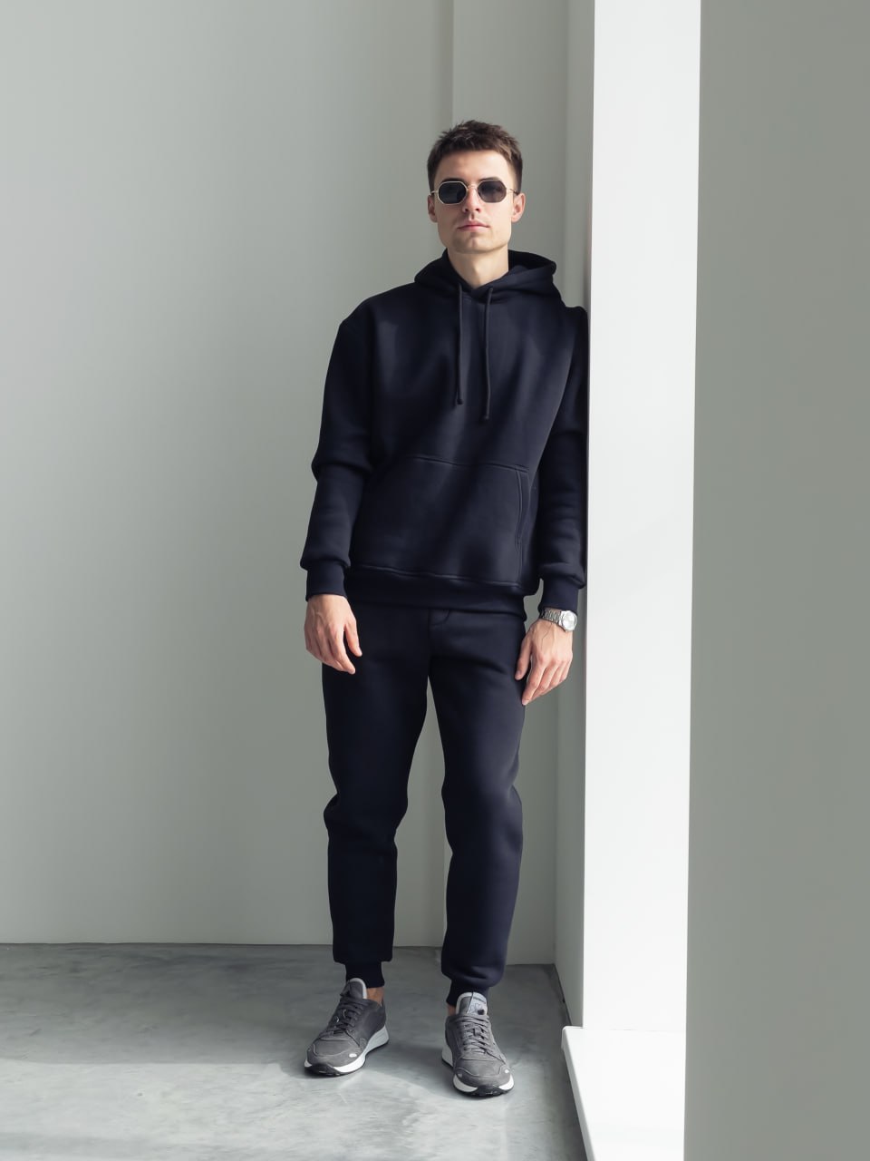 Мужской Теплый Базовый Спортивный Костюм Темно-Синего Цвета Пенье на Флисе (Худи + Джоггеры)