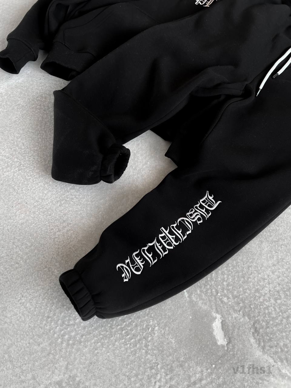 Мужской Теплый Черный Костюм Худи Джоггеры на Флисе с Вышивками