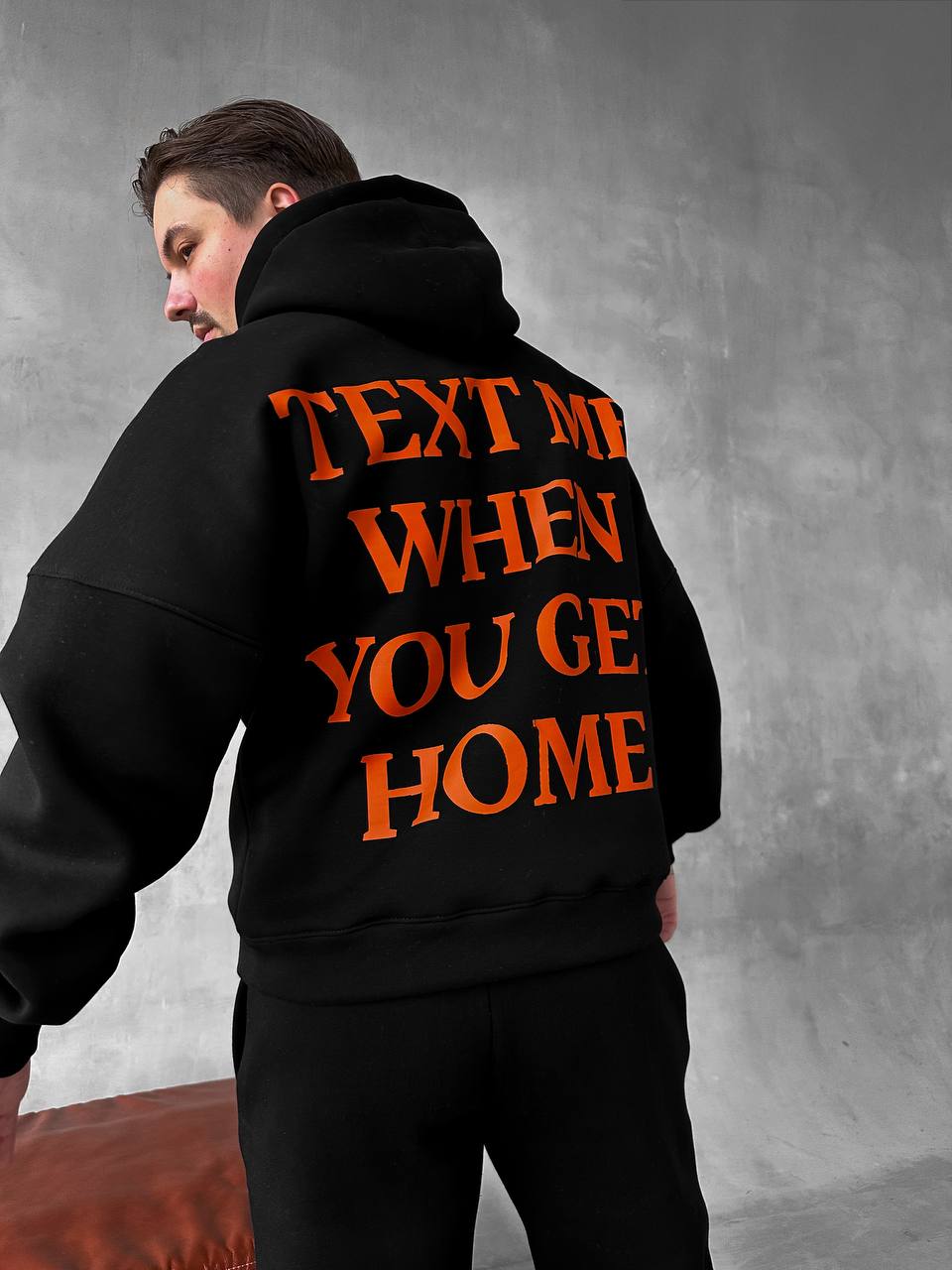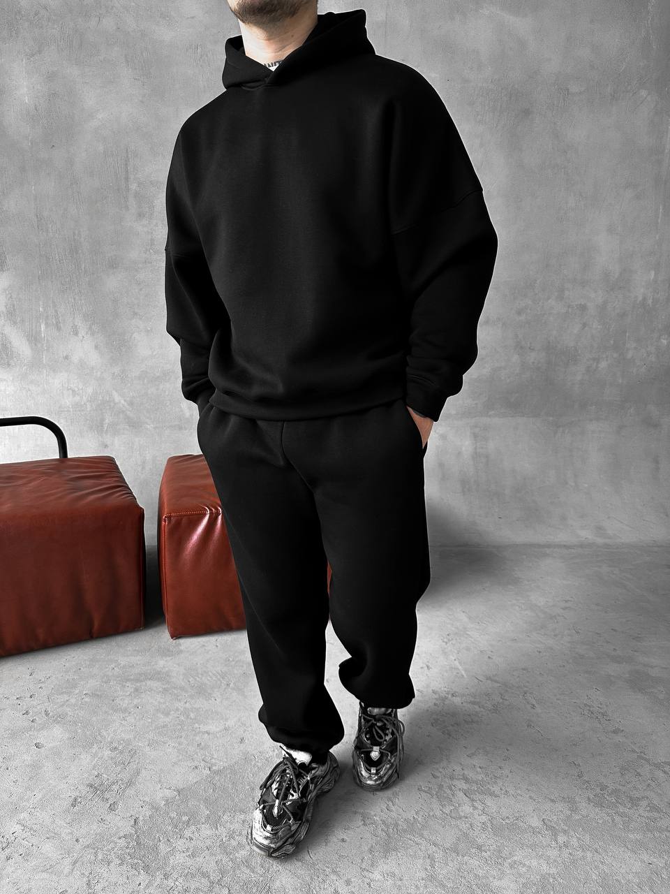 Мужской Теплый Черный Спортивный Костюм с Надписью на Спине – Толстовка Штаны с Начесом