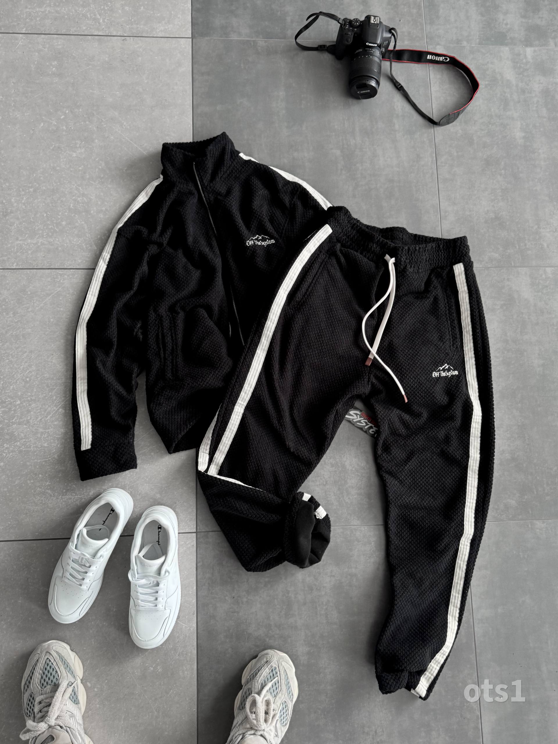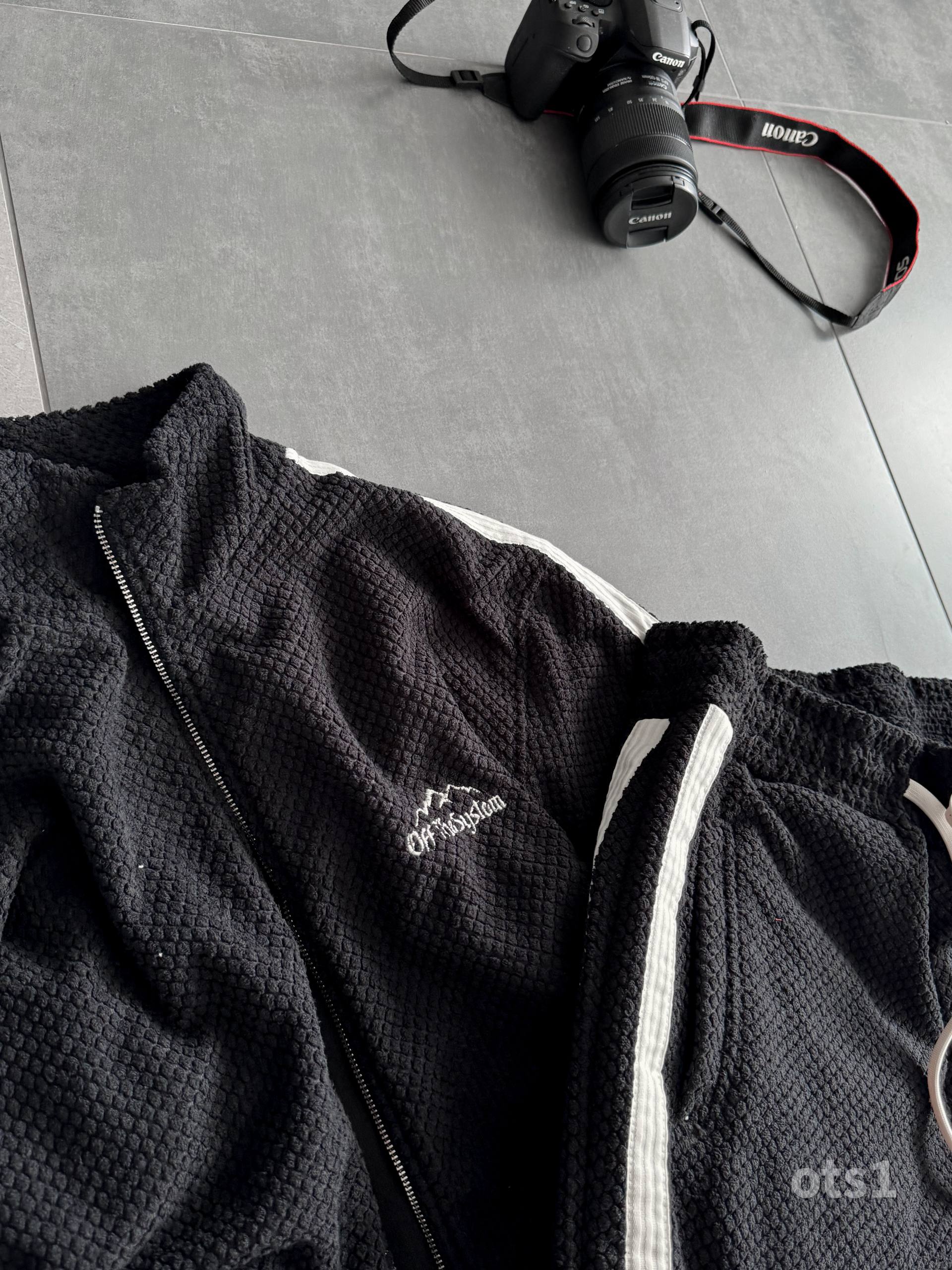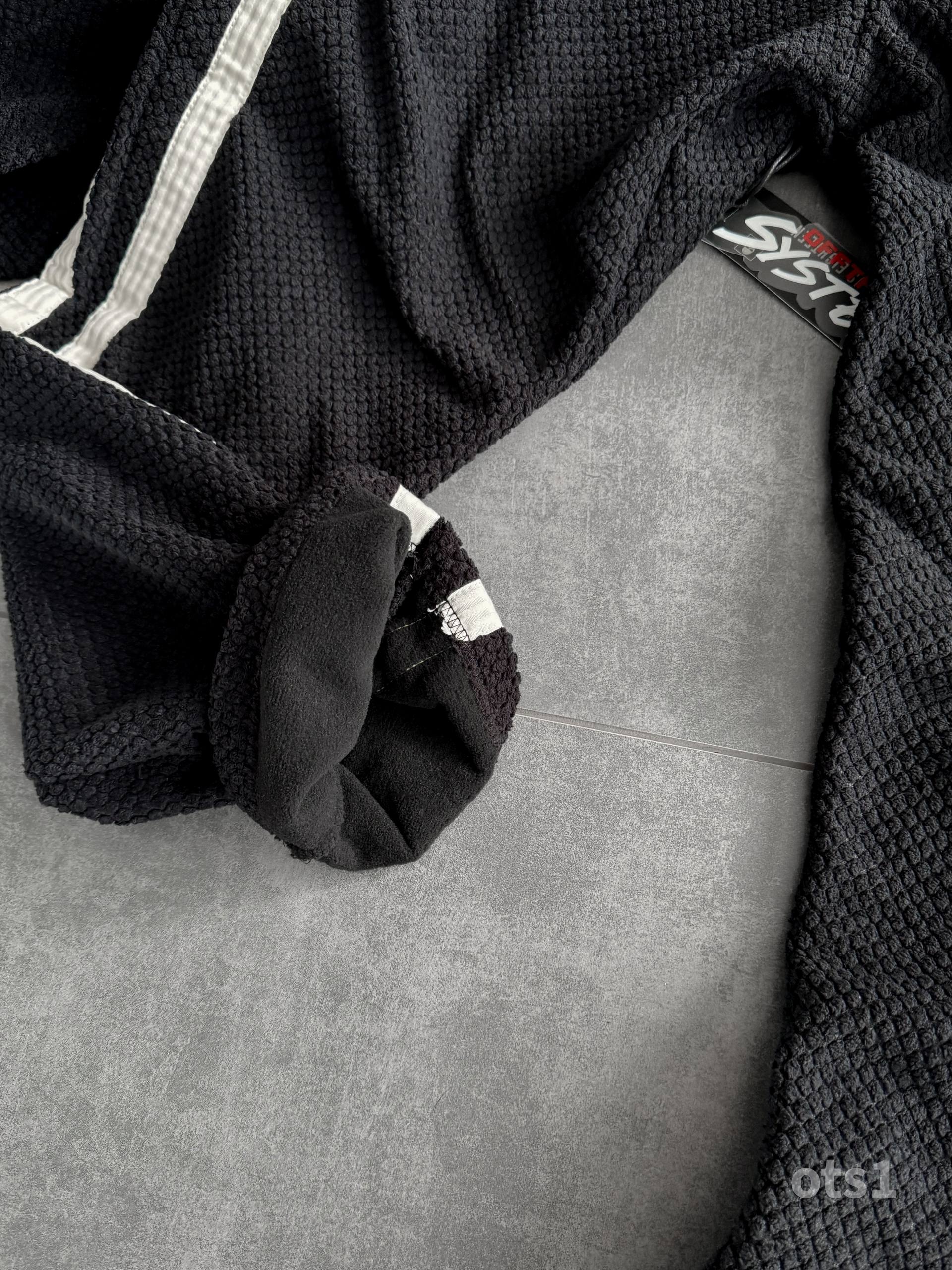 Мужской Теплый Флисовый Черный Костюм с Лампасами – Зип Кофта + Штаны
