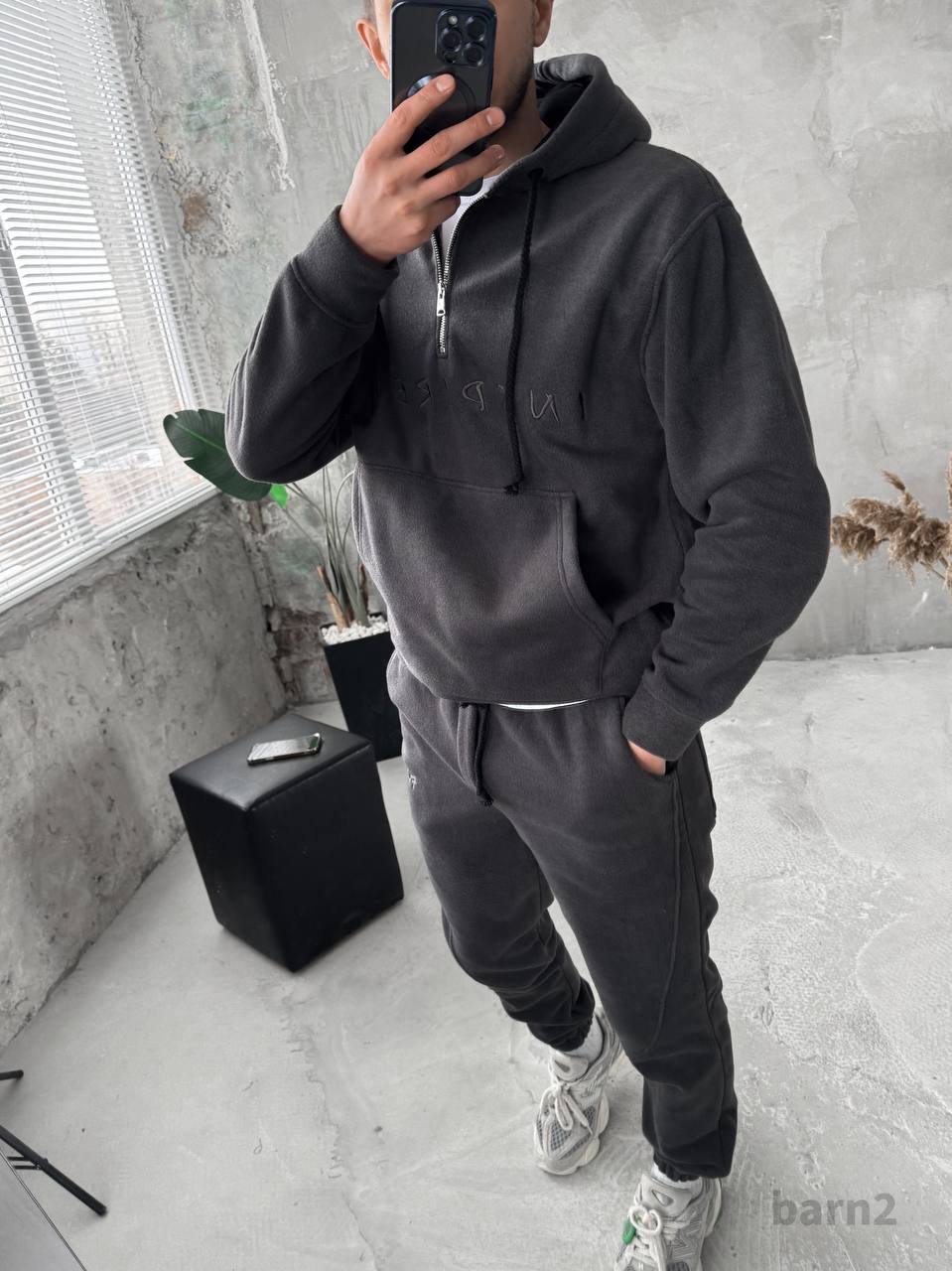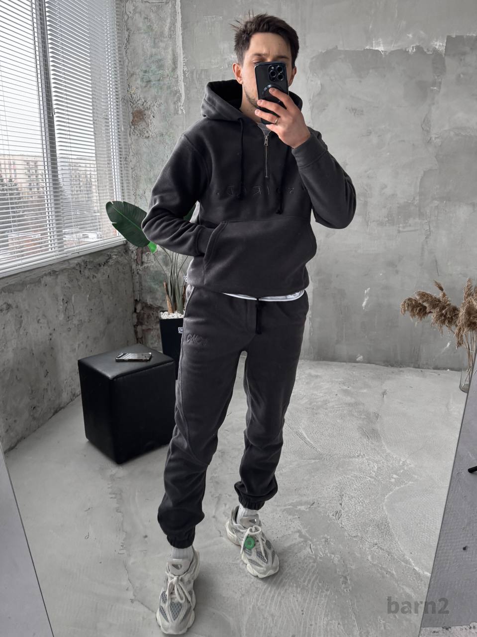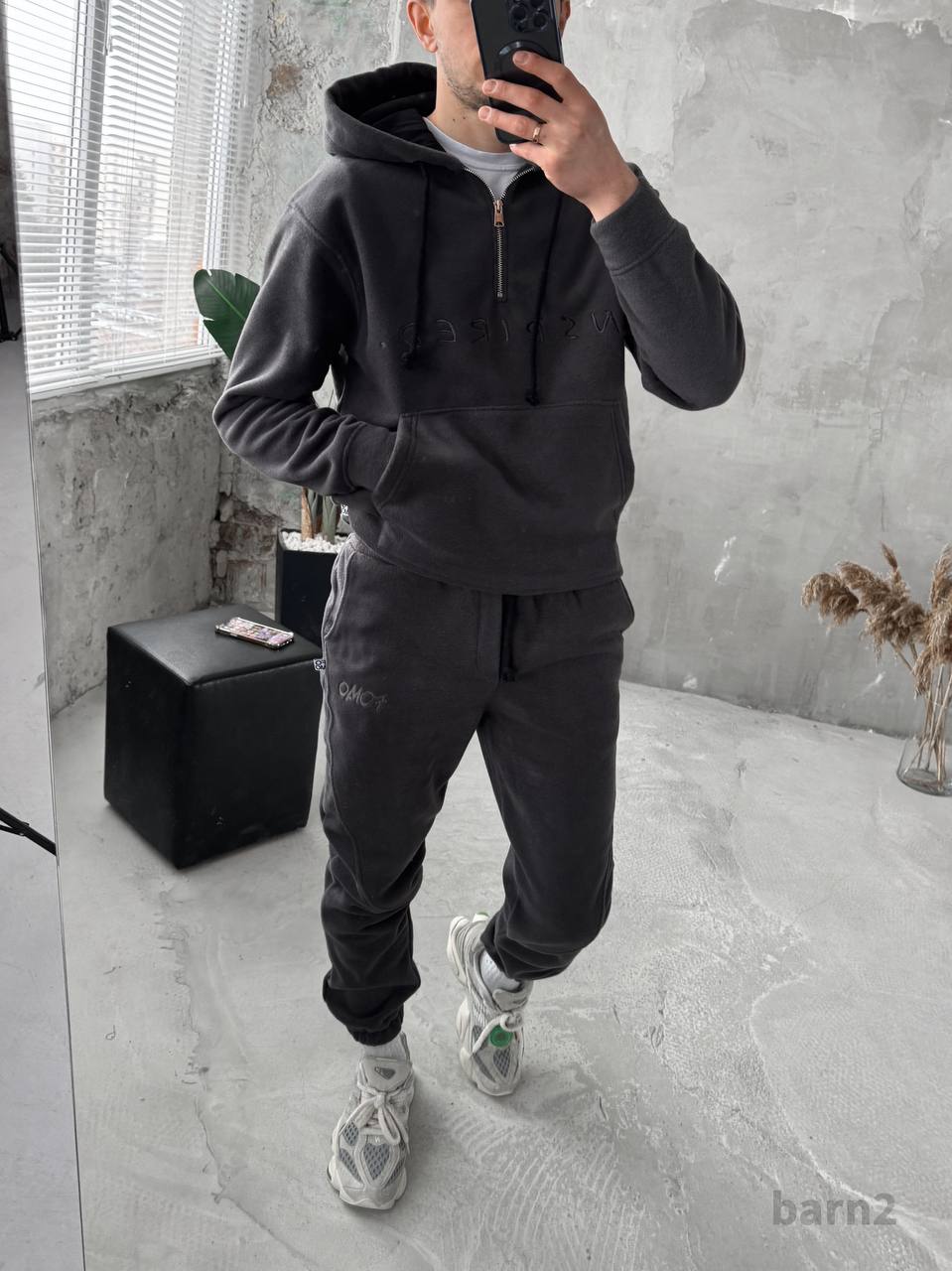 Мужской Теплый Графитовый Костюм Флисовый – Худи с Замком + Штаны Джоггеры