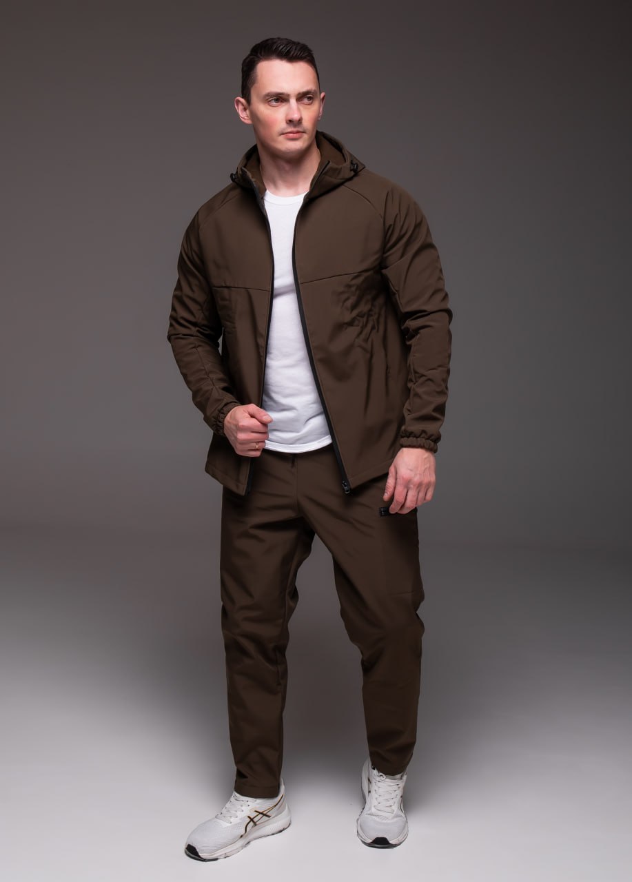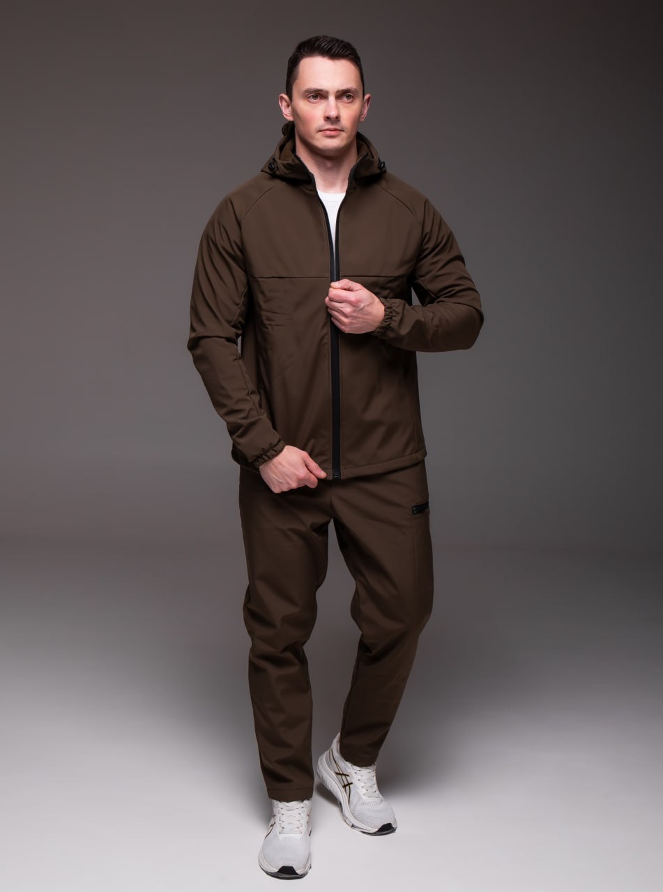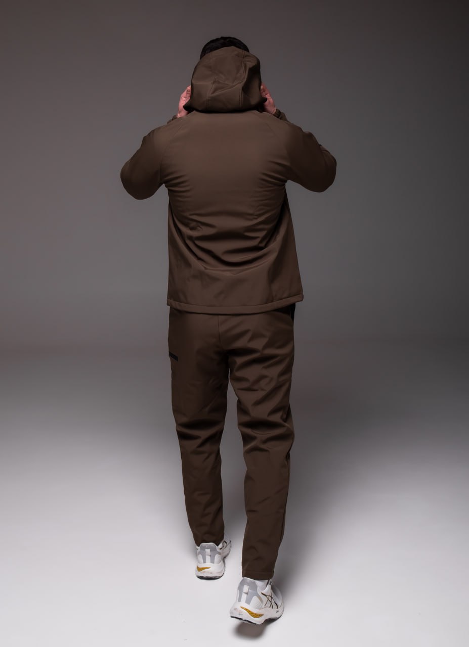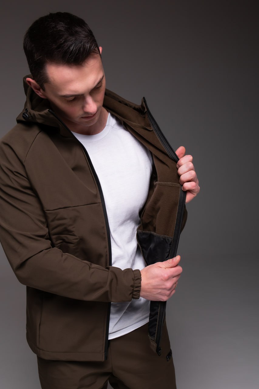 Мужской Теплый Костюм Хаки Softshell на Флисе – Ветровка + Штаны