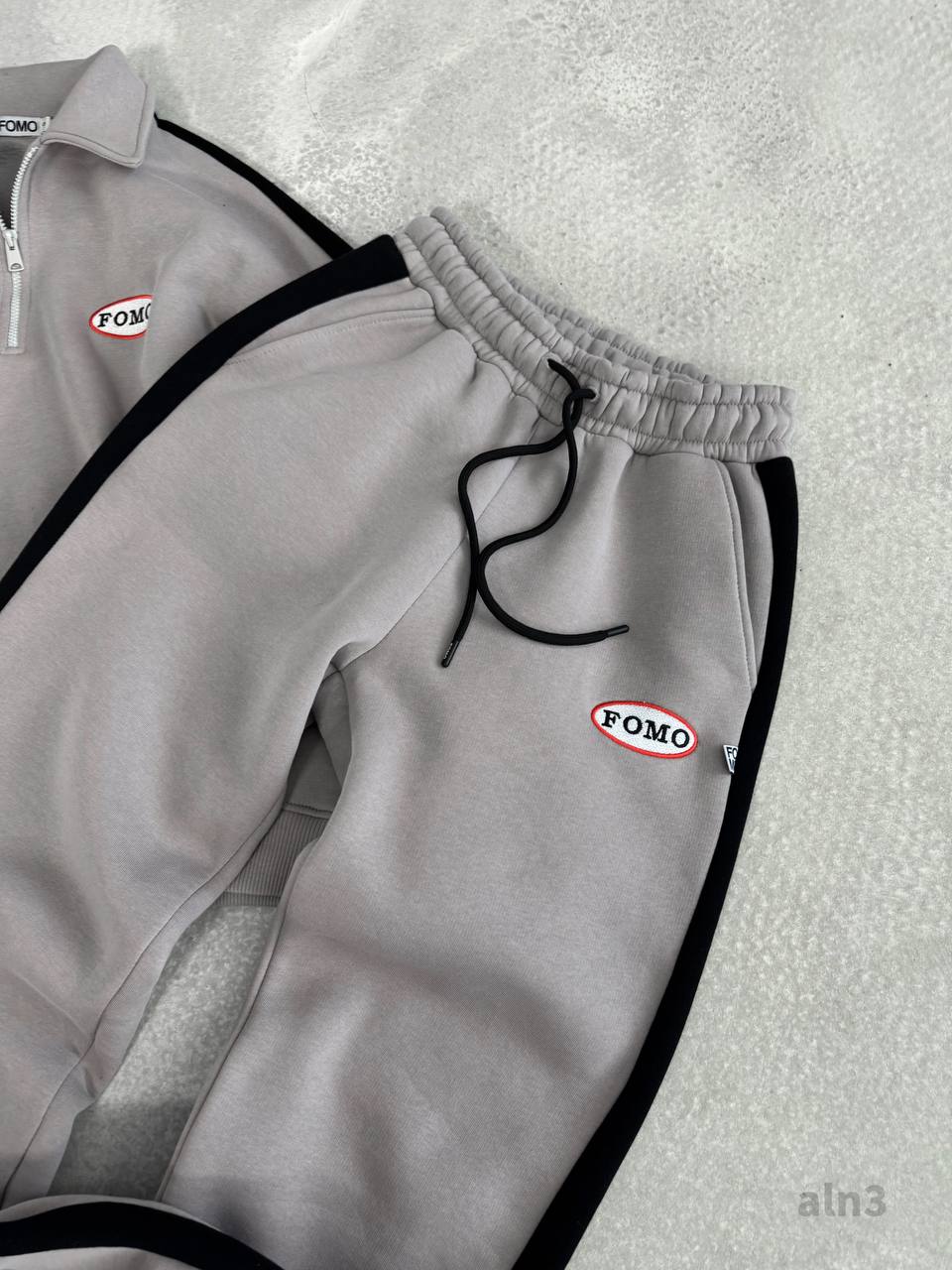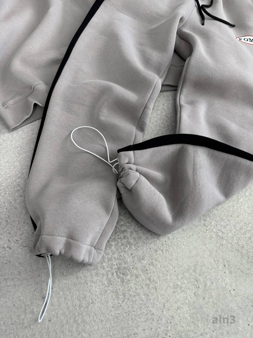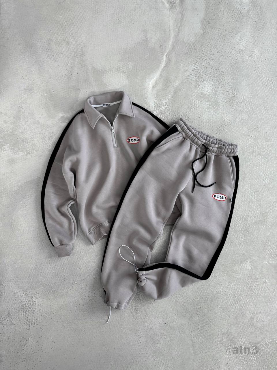Мужской Теплый Серый Костюм на Флисе с Лампасами – Кофта Свитшот с Воротником + Штаны с Затяжками