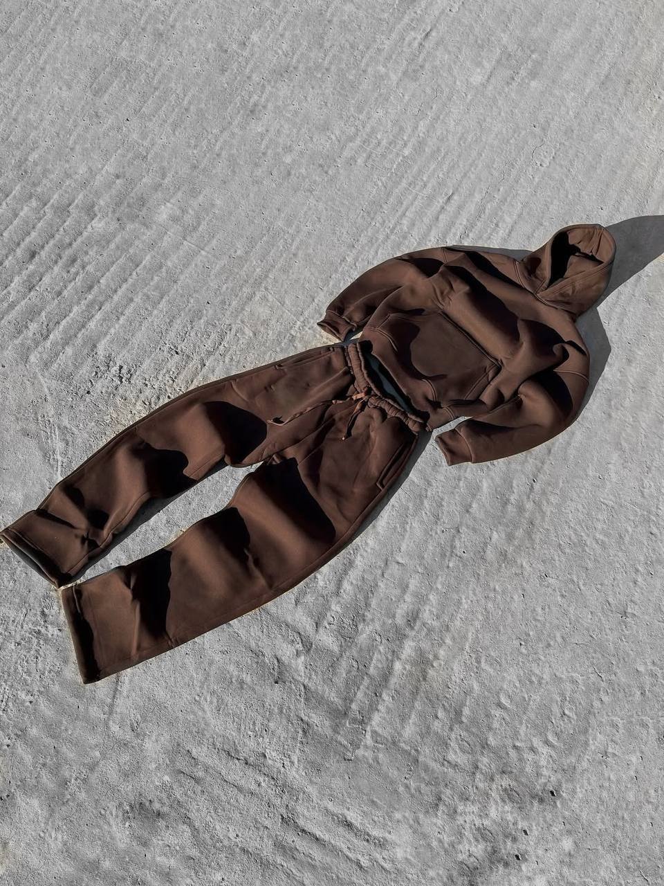 Мужской Утепленный Коричневый Спортивный Костюм Худи Штаны на Флисе Оверсайз