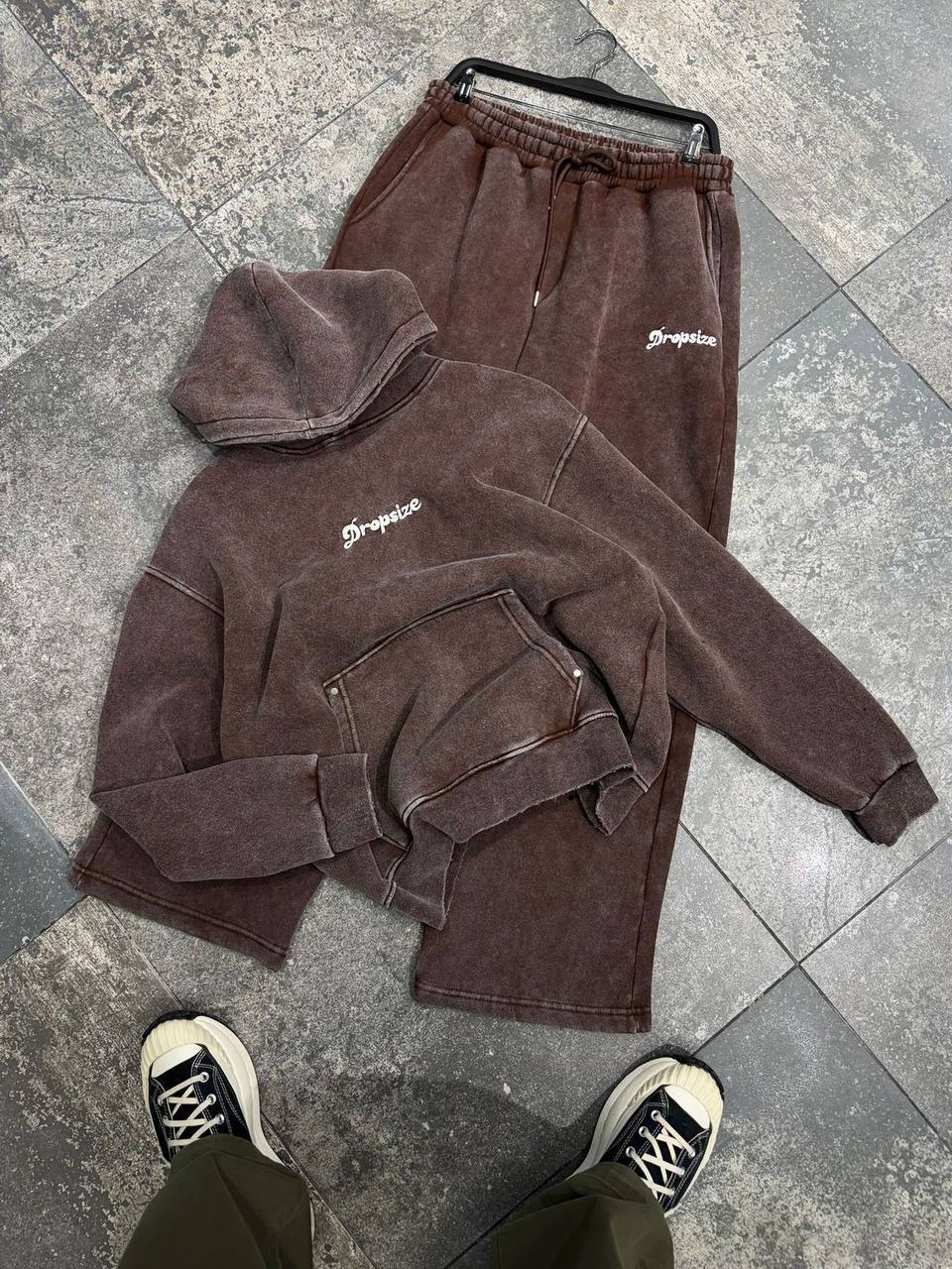 Мужской Утепленный Коричневый Спортивный Костюм Варенка Оверсайз на Флисе (Худи + Штаны)