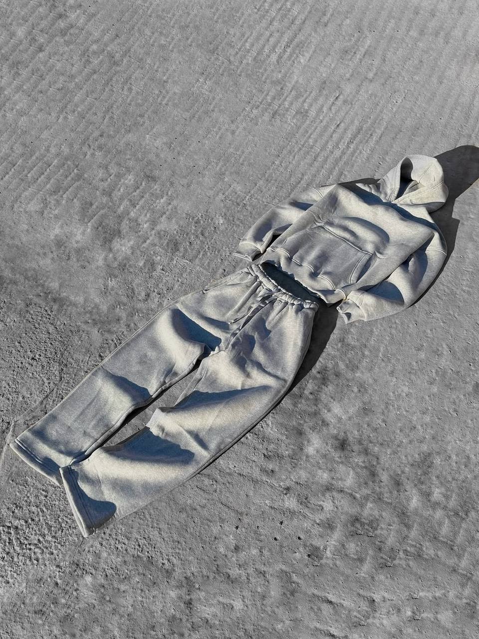 Мужской Утепленный Серый Спортивный Костюм Худи Штаны на Флисе Оверсайз