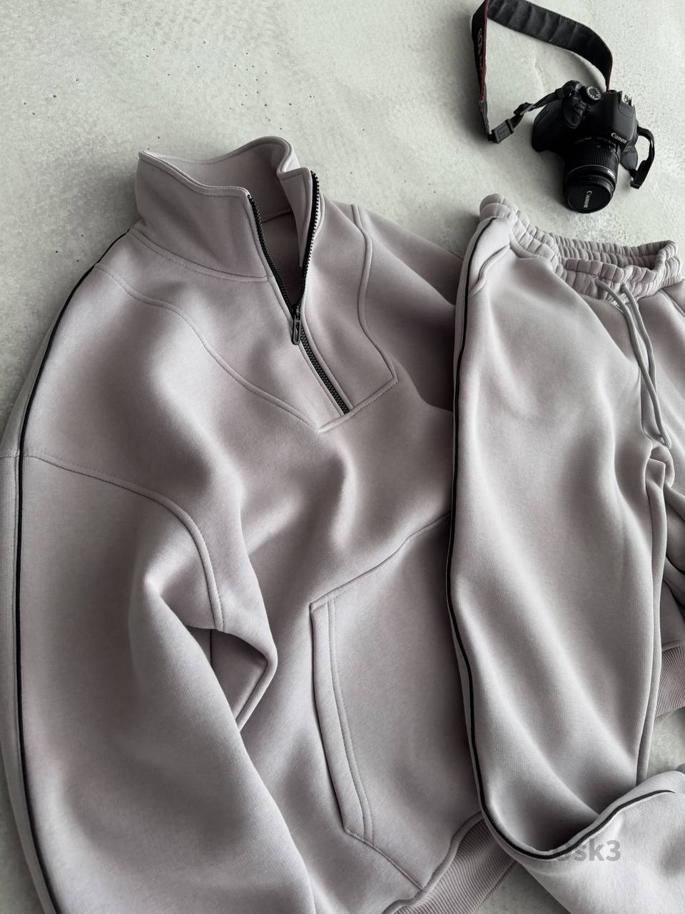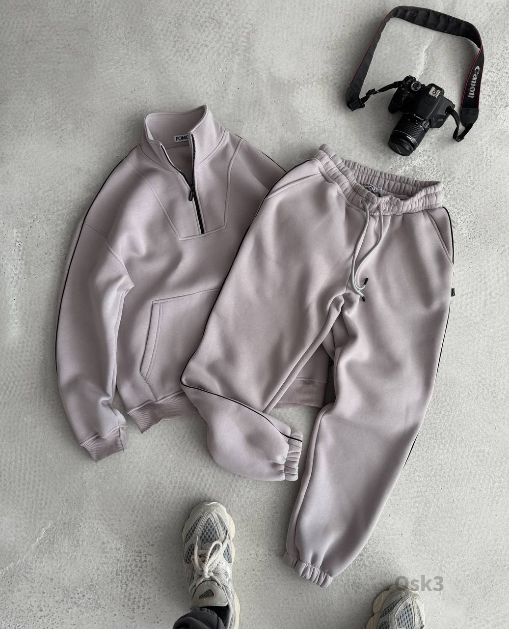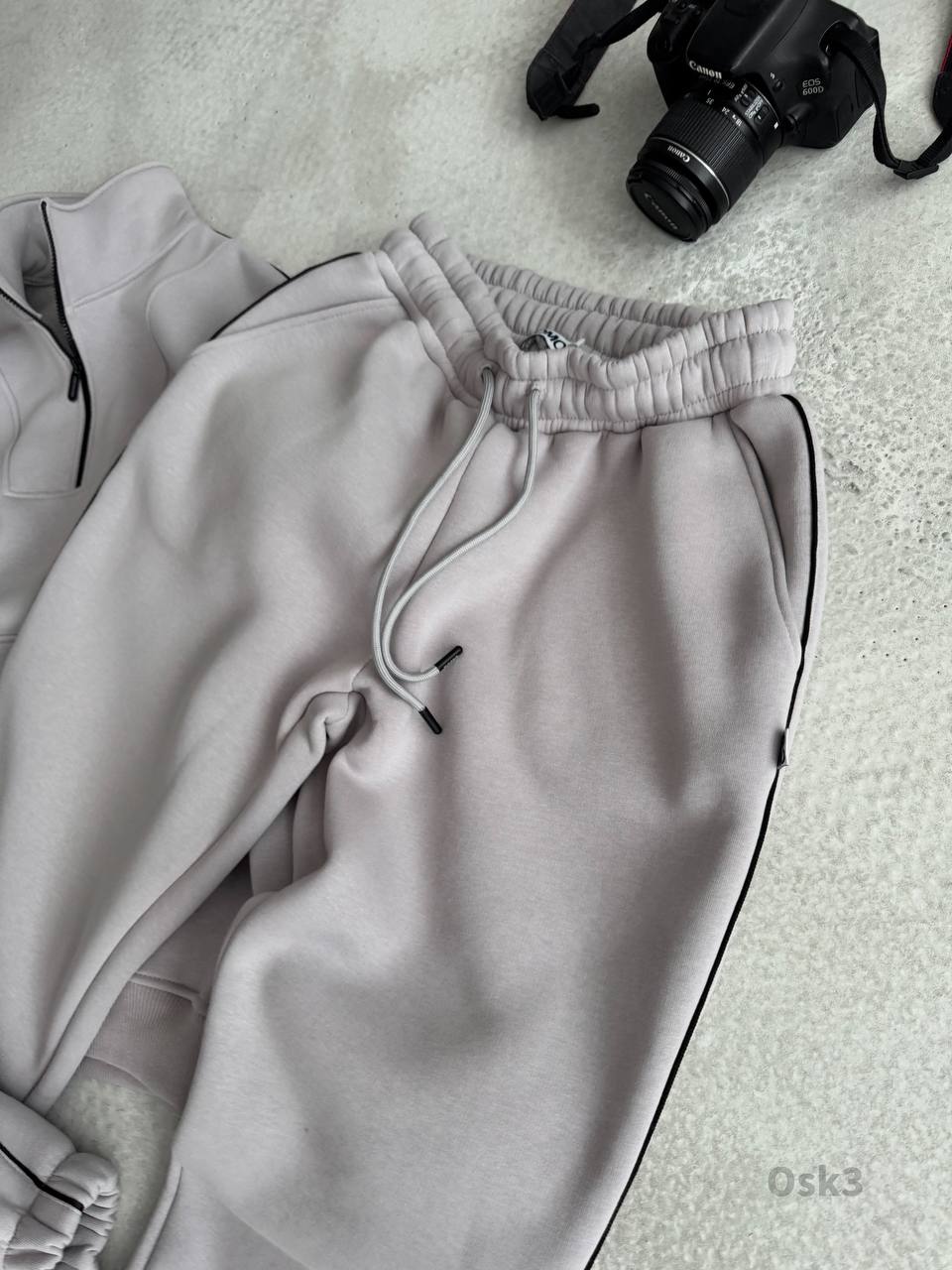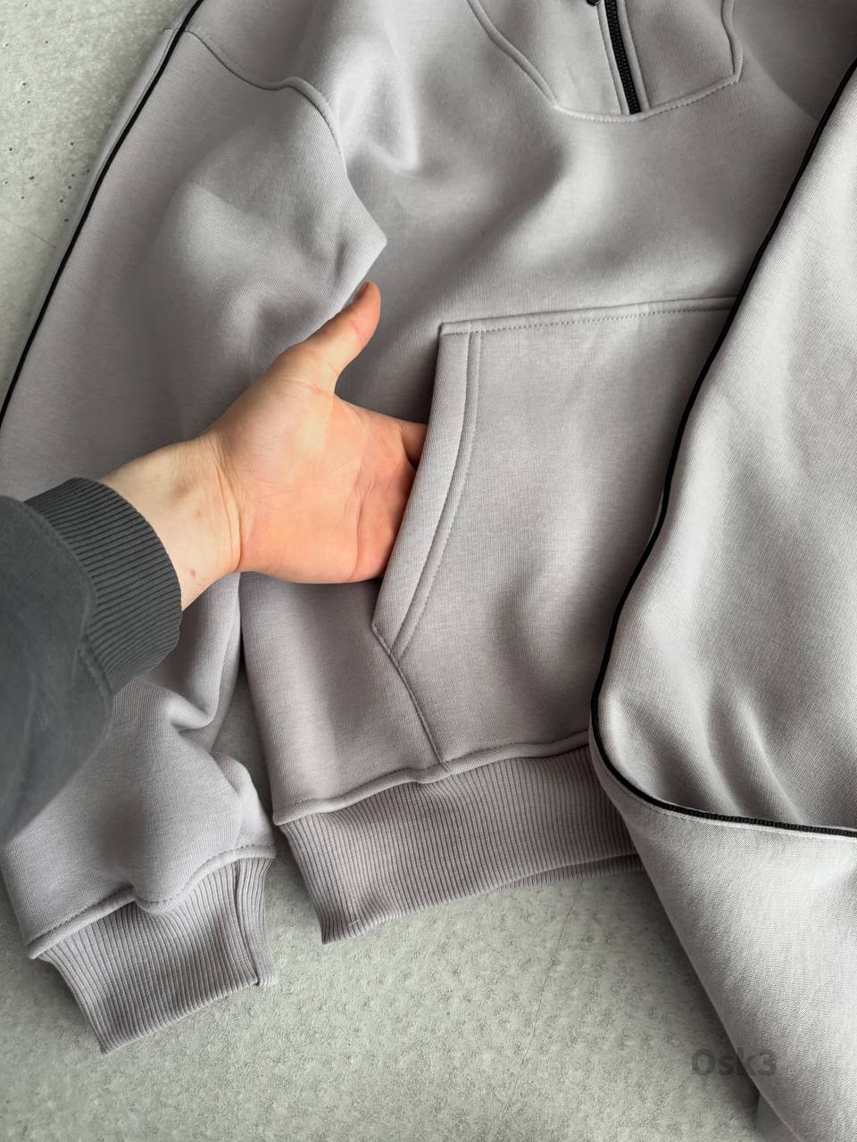 Мужской Утепленный Серый Спортивный Костюм на Флисе с Кантом (Свитшот + Штаны)