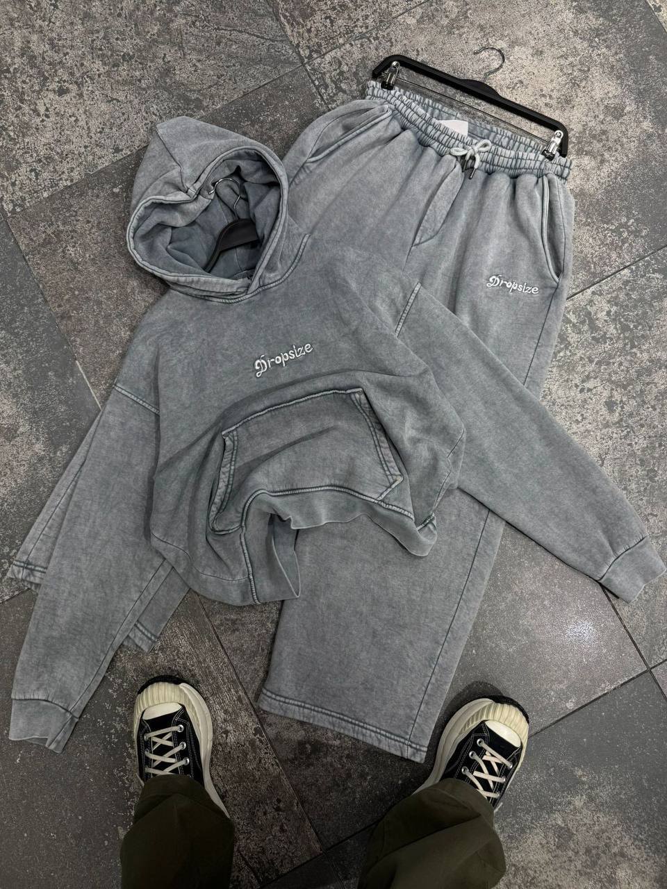 Мужской Утепленный Серый Спортивный Костюм Варенка Оверсайз на Флисе (Худи + Штаны)