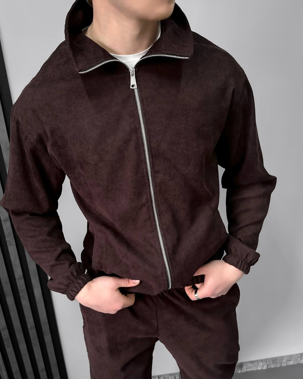 Мужской Вельветовый Коричневый Костюм на Молнии – Зип Кофта + Штаны с Манжетами