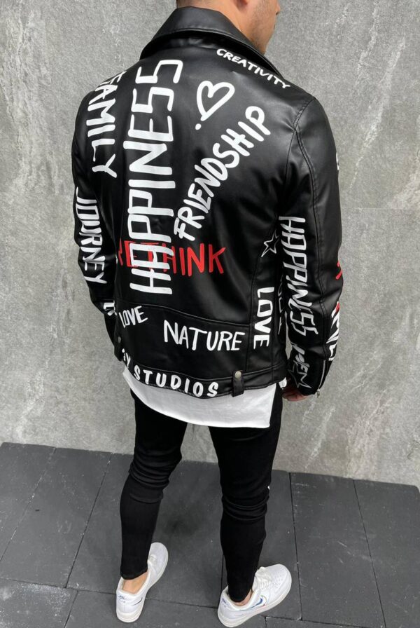 Мужская Кожаная Черная Куртка – Косуха Кожанка Разрисованная в Надписях