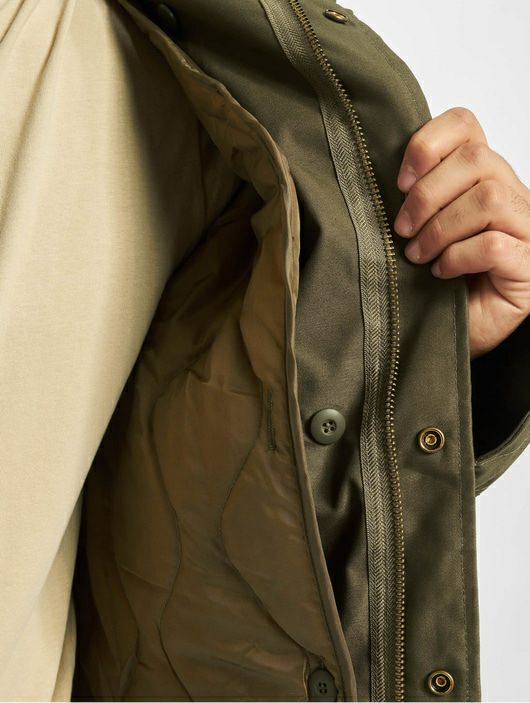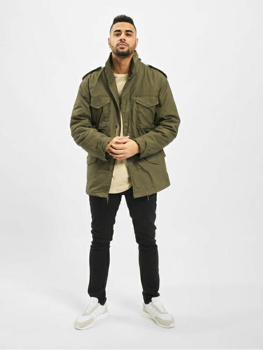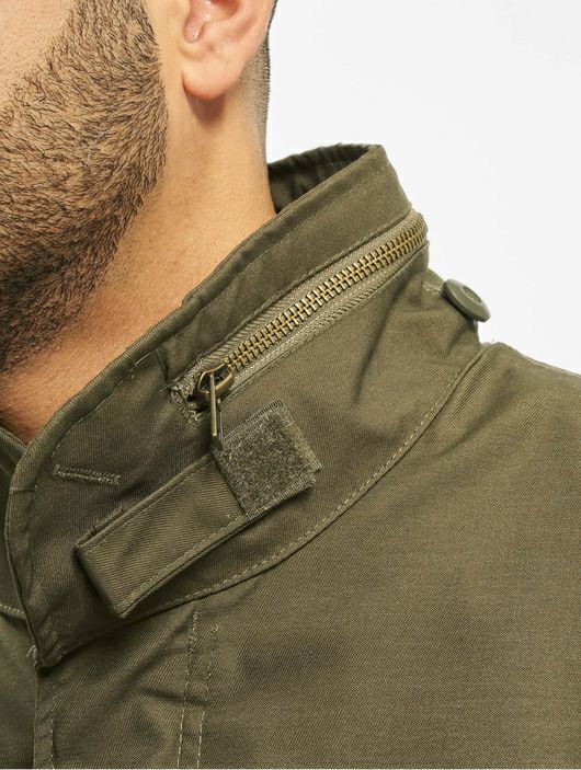 Мужская Демисезонная Куртка Хаки на Подкладке с Карманами и Скрытым Капюшоном в Воротнике