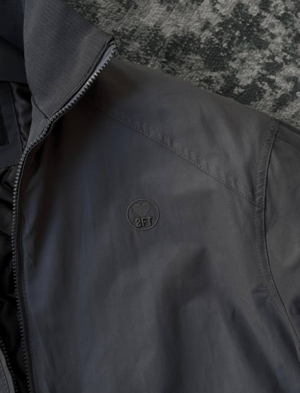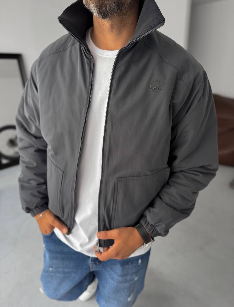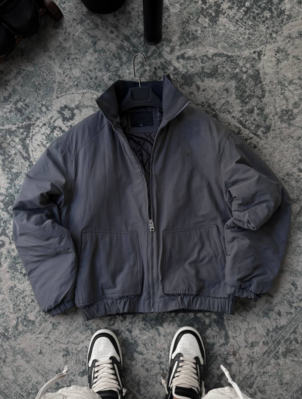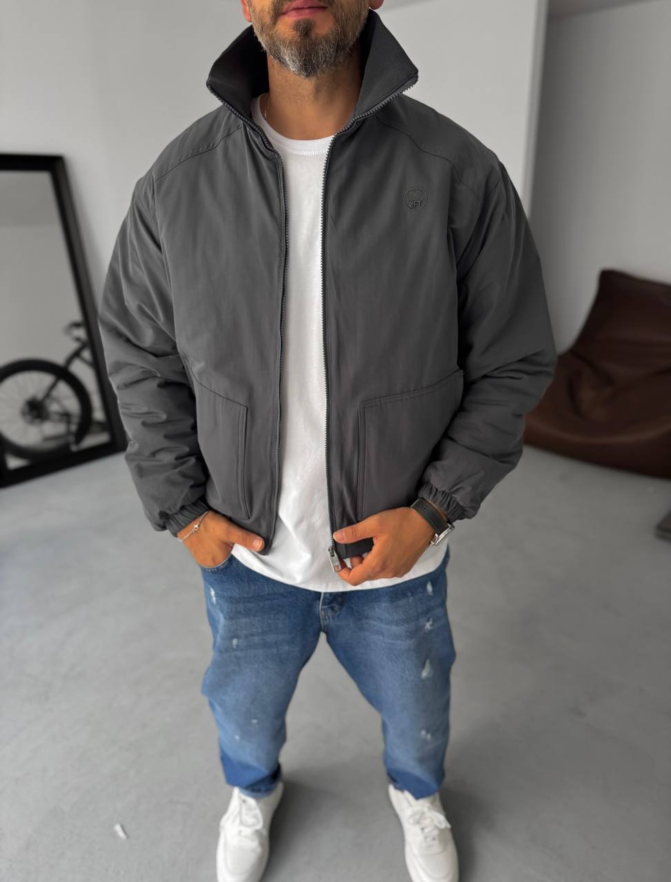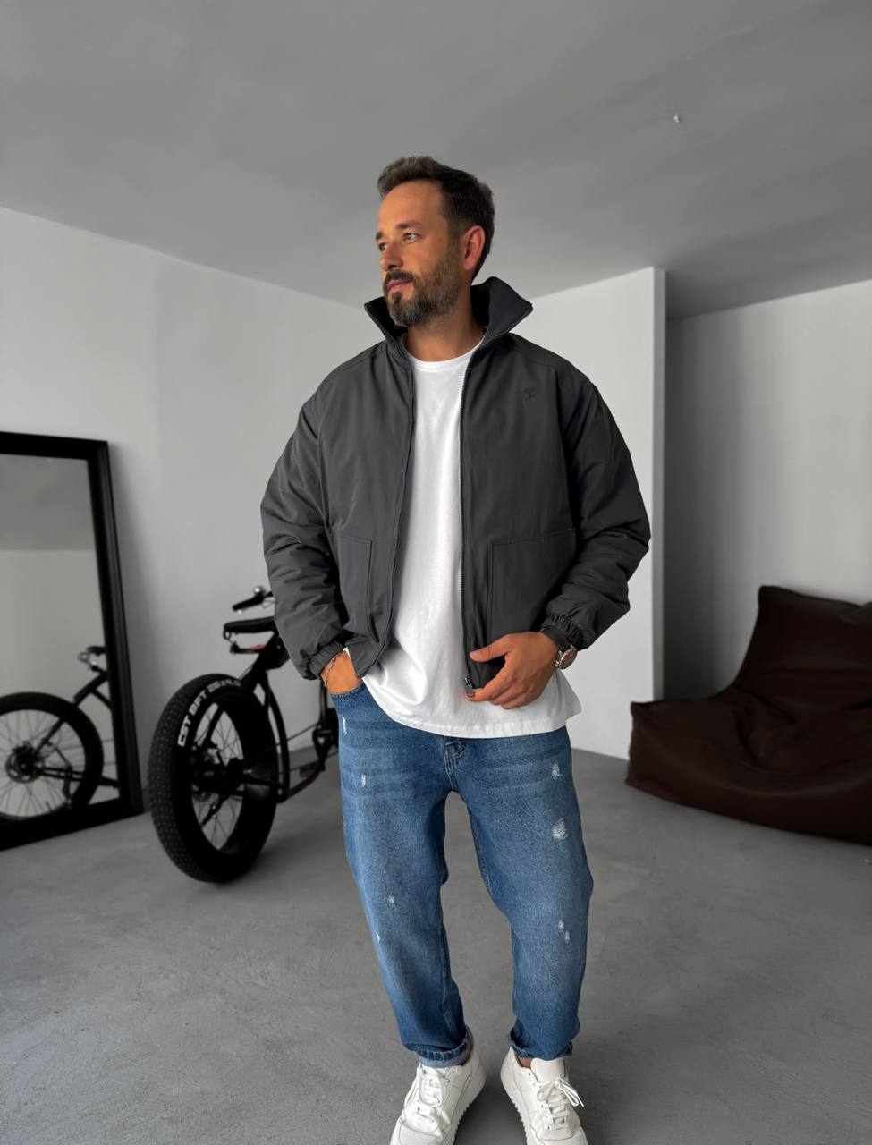 Мужская Демисезонная Темно-Серая Куртка под Горло на Подкладке